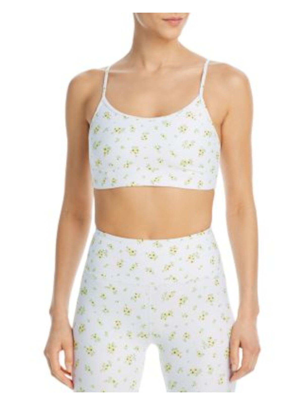 AQUA ATHLETIC Womens Crop Top White Moisture Wicking Lined Spaghetti Strap Scoop Neck Active Wear Elastic Hem Low Impact Bralette XS