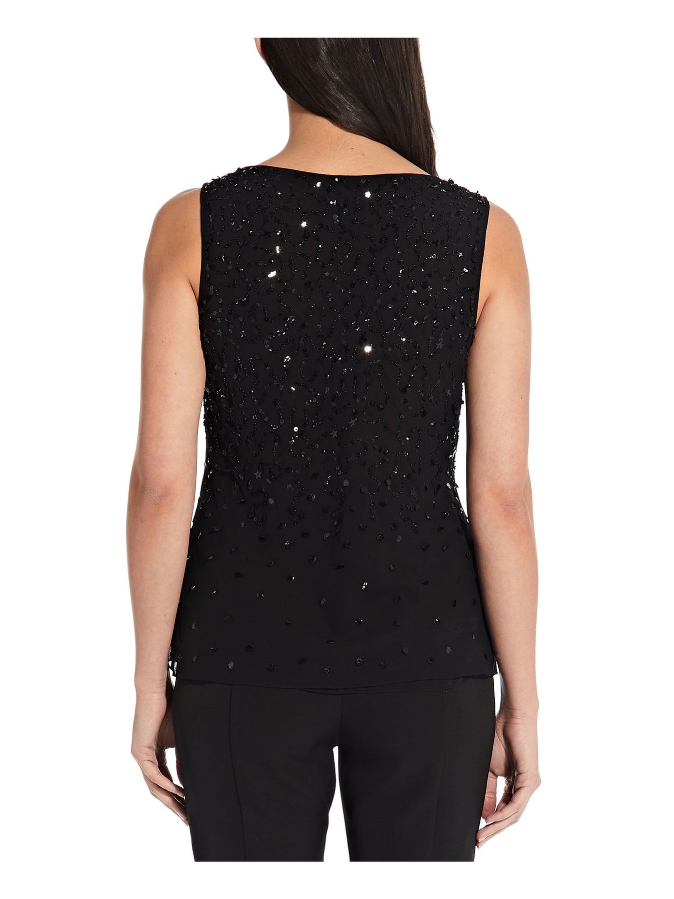 ADRIANNA PAPELL Womens Top Black Embellished Beaded Sleeveless Cowl Neck Evening Lined S