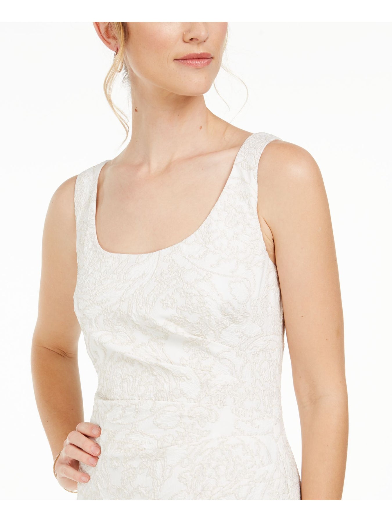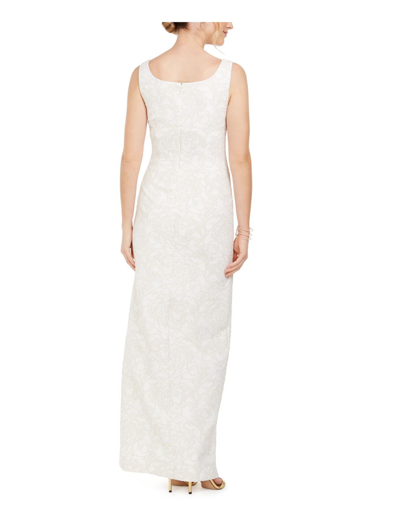 ADRIANNA PAPELL Womens Ivory Embroidered Zippered Sleeveless Scoop Neck Maxi Evening Sheath Dress 2