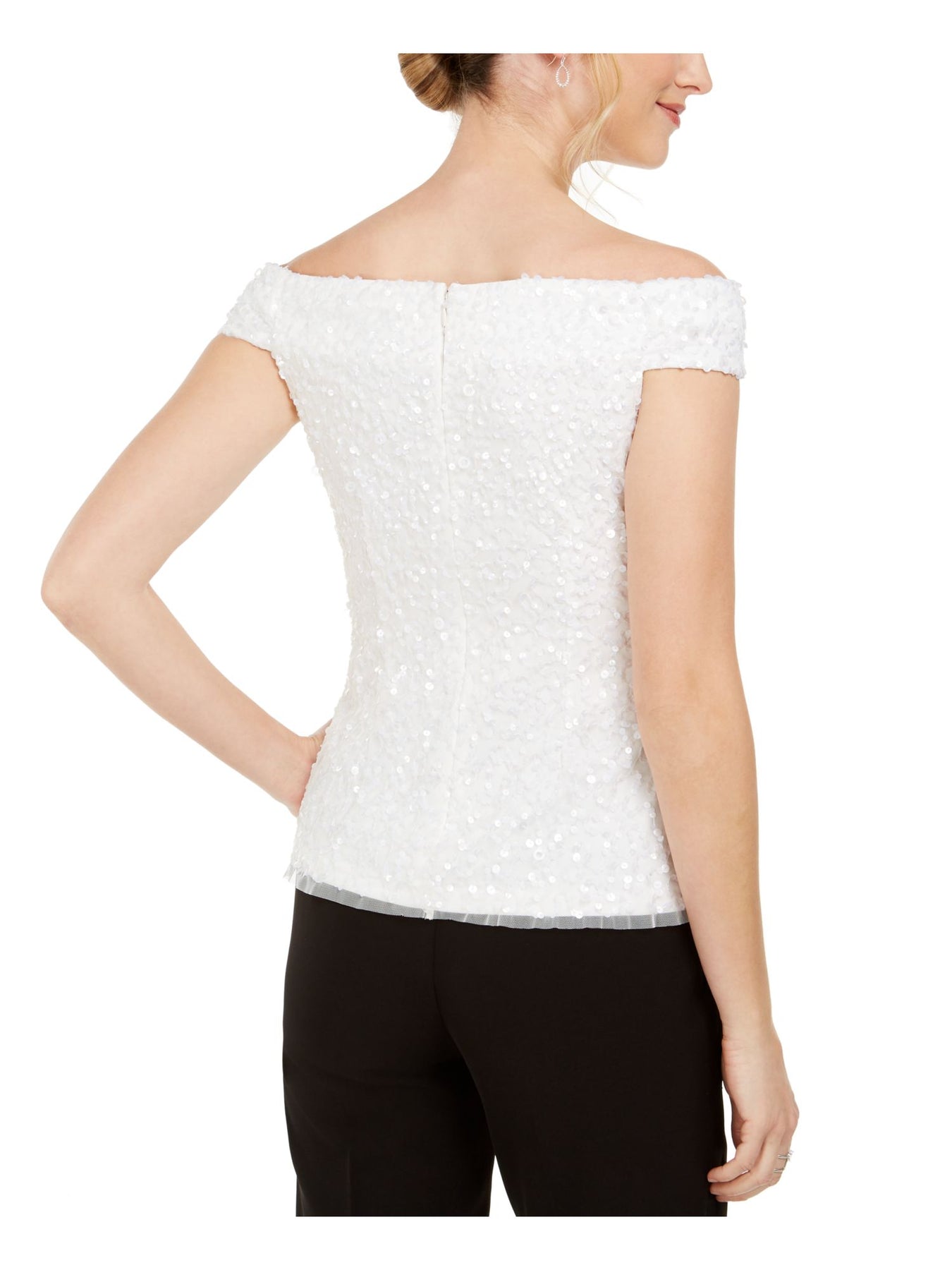 ADRIANNA PAPELL Womens Top White Sequined Sleeveless Off Shoulder Party 2