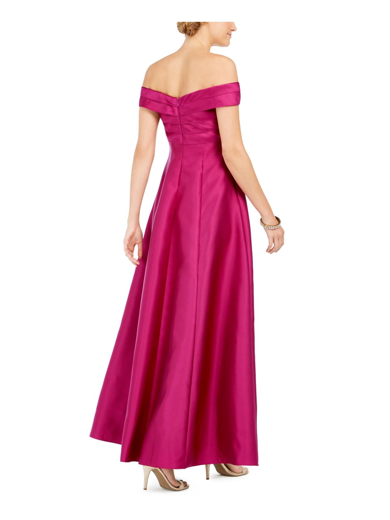 Womens Zippered Short Sleeve Off Shoulder Maxi Formal Fit + Flare Dress