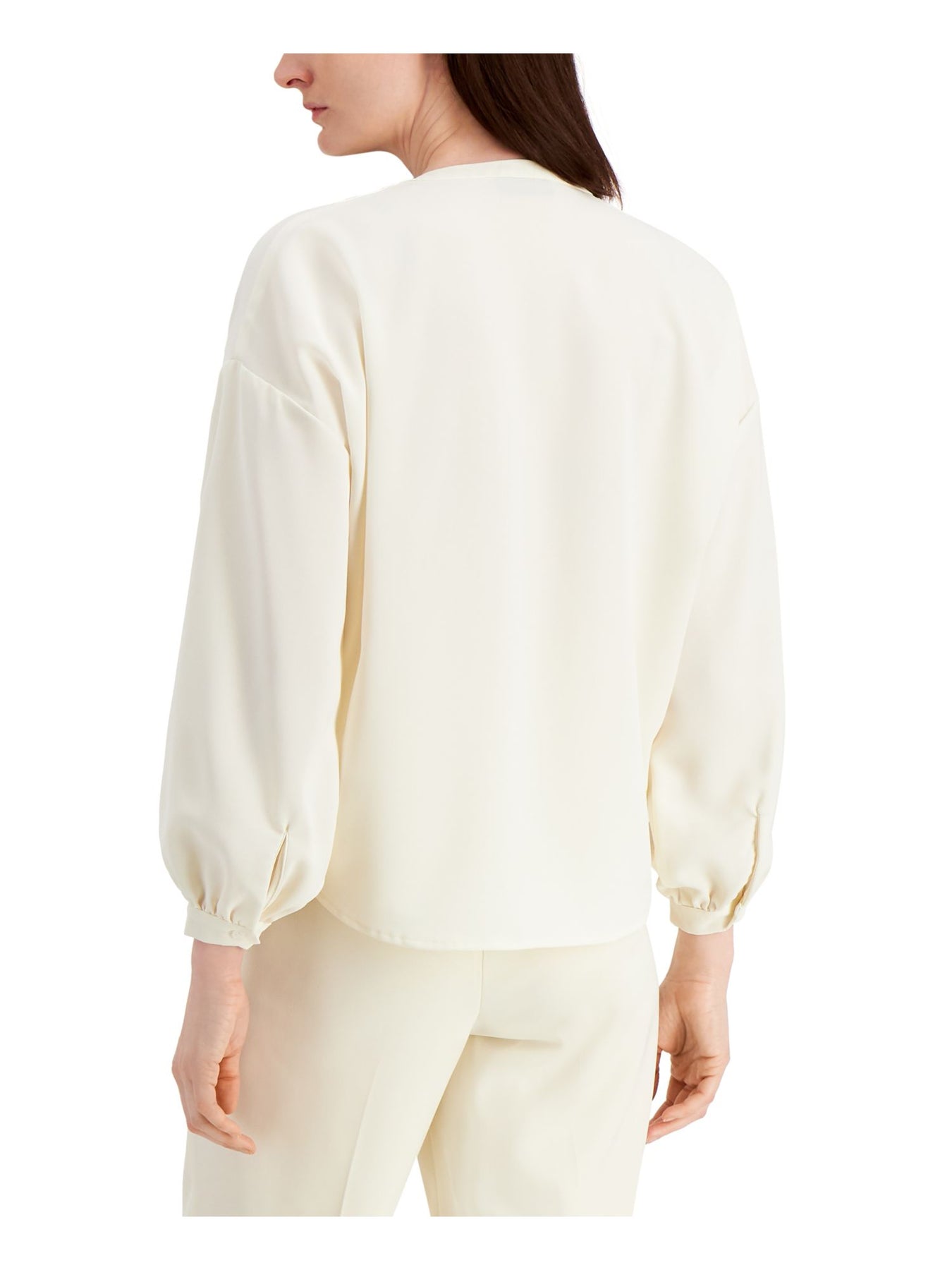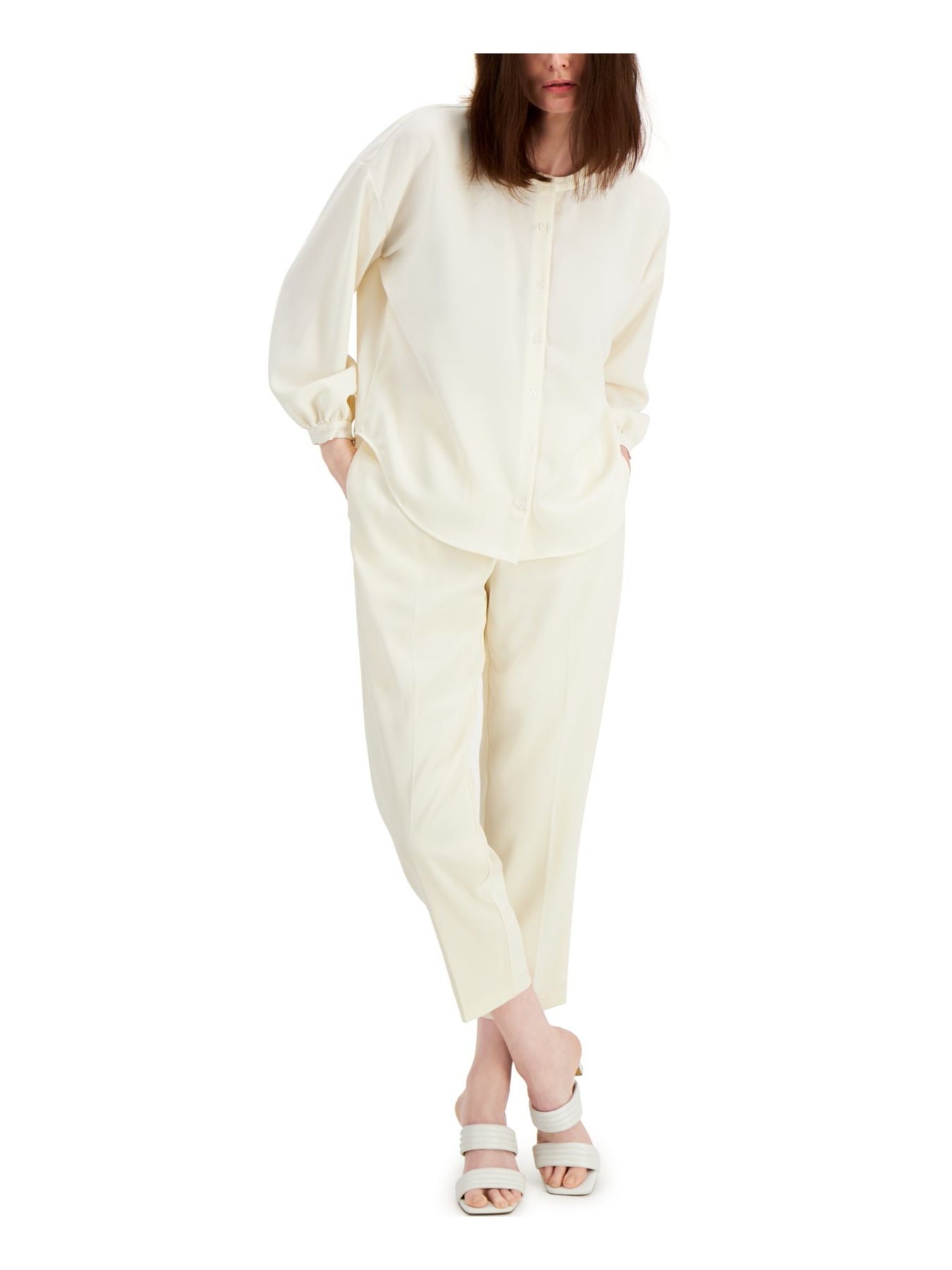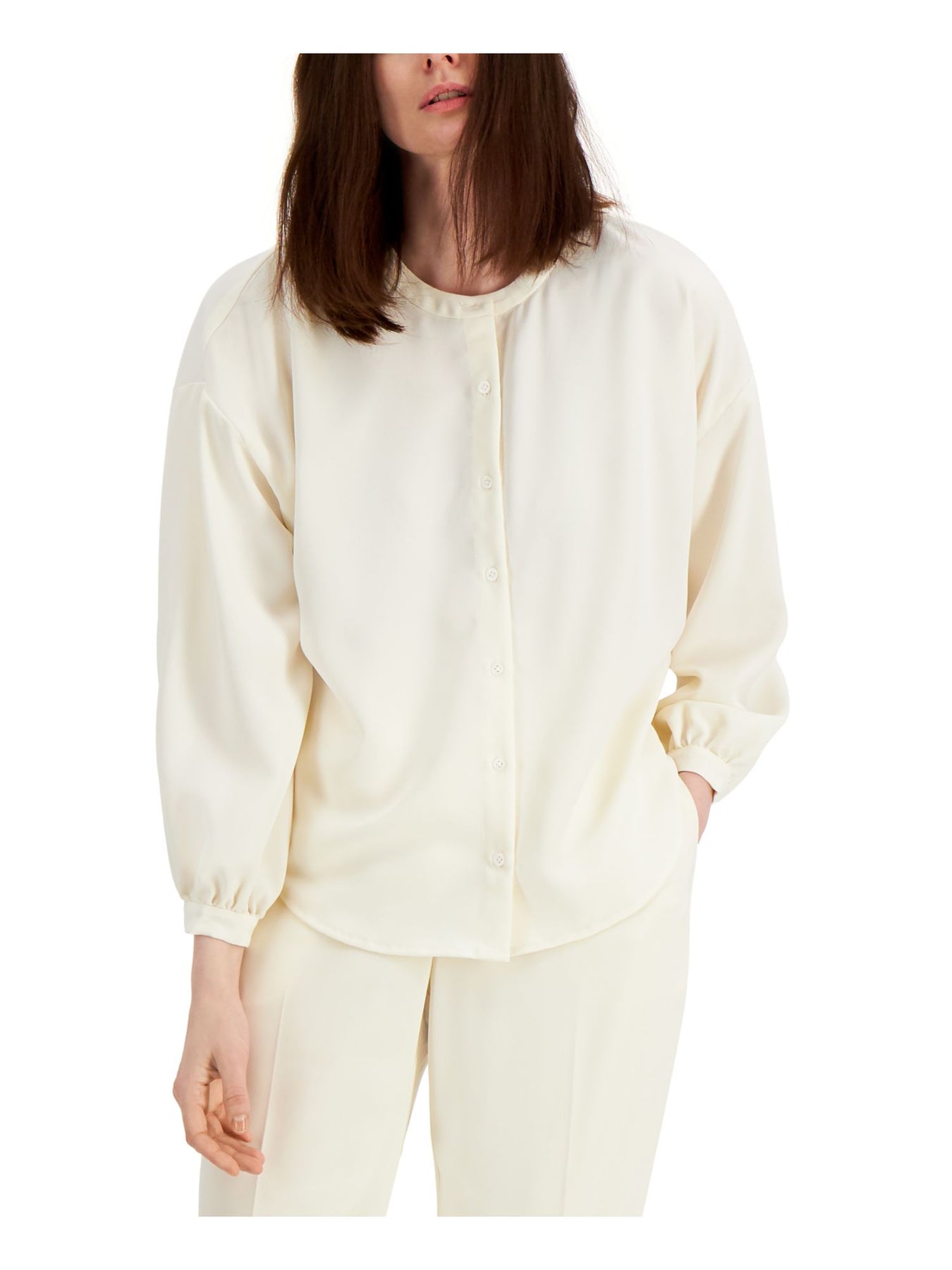 ALFANI Womens Ivory Dolman Sleeve Crew Neck Button Up Top L