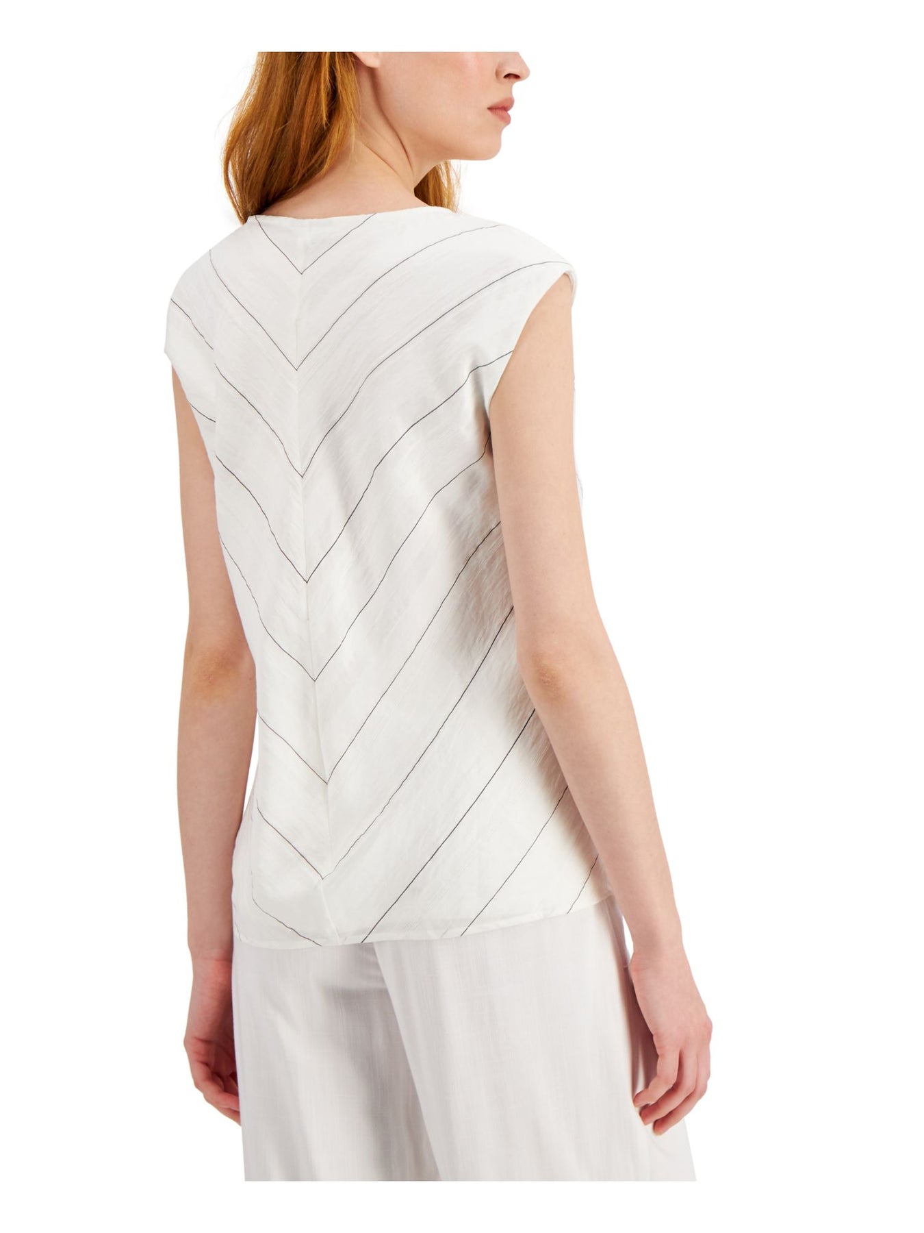 ALFANI Womens Ivory Striped Cap Sleeve V Neck Top M