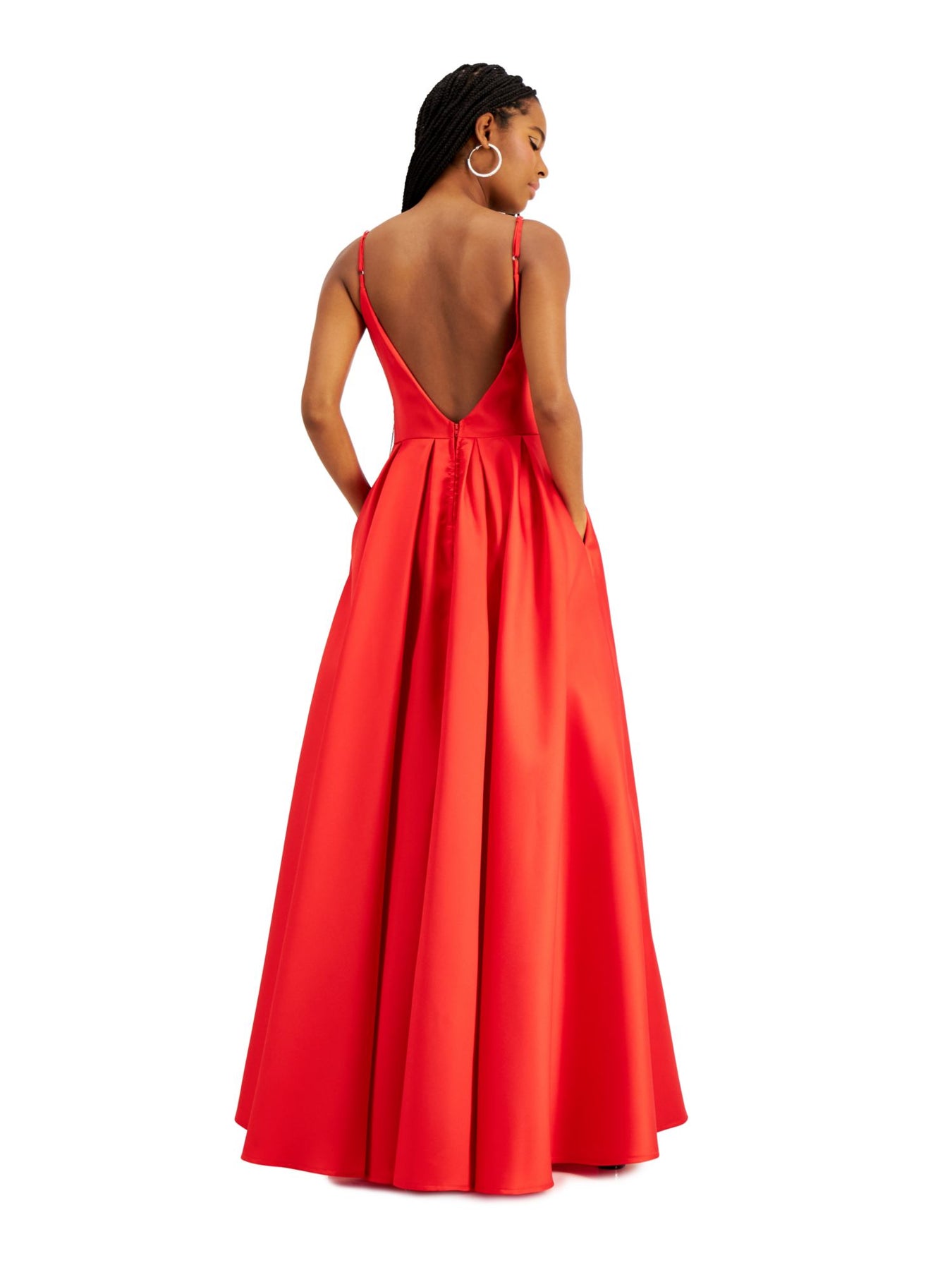 B DARLIN Womens Embellished Spaghetti Strap V Neck Full-Length Prom Fit + Flare Dress