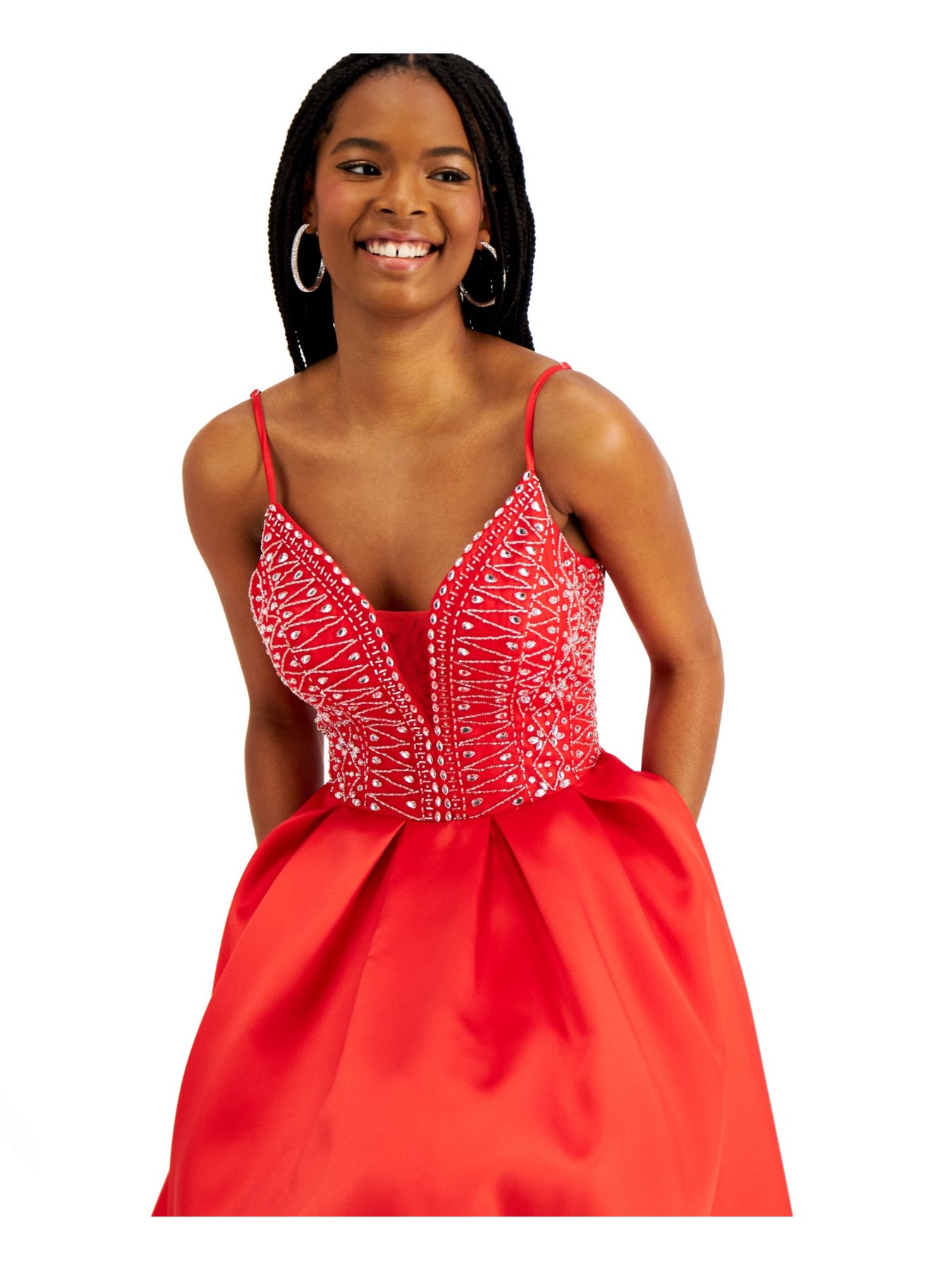 B DARLIN Womens Fit + Flare Full-Length Dress Red Embellished Spaghetti Strap V Neck Prom Juniors 5\6