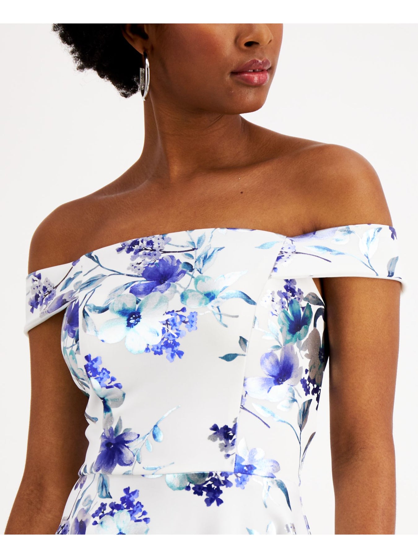 CRYSTAL DOLLS Womens White Zippered Floral Cap Sleeve Off Shoulder Short Party Fit + Flare Dress 7