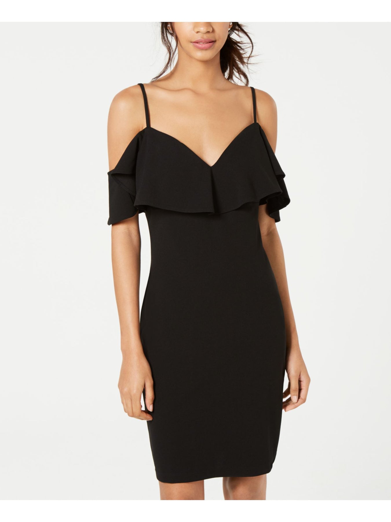Womens Cold Shoulder Spaghetti Strap V Neck Short Cocktail Shift Dress