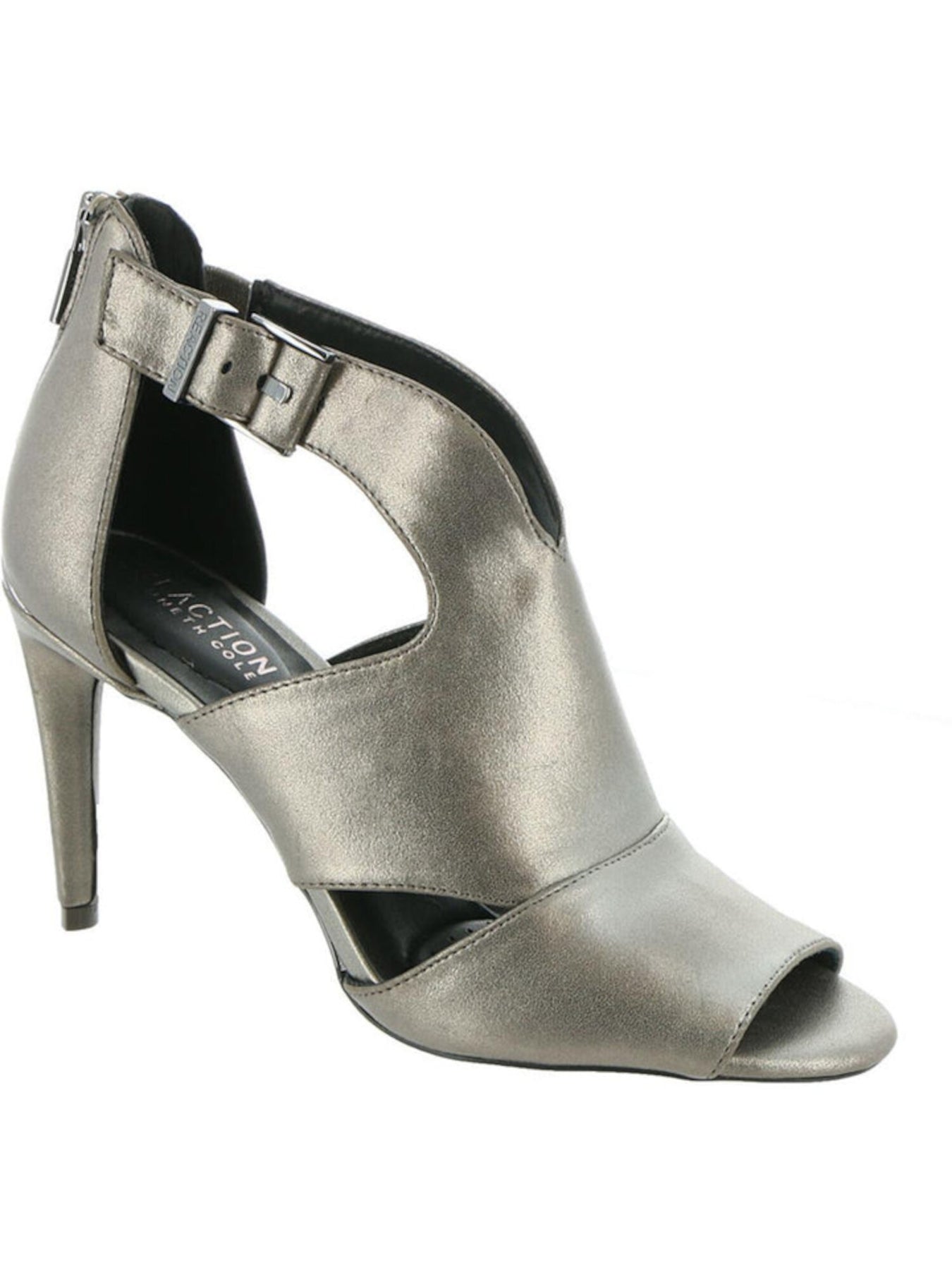 KENNETH COLE Womens Gray Cutouts At Sides Adjustable Strap Comfort Kick 85 Peep Toe Stiletto Zip-Up Dress Sandals Shoes 6.5 M