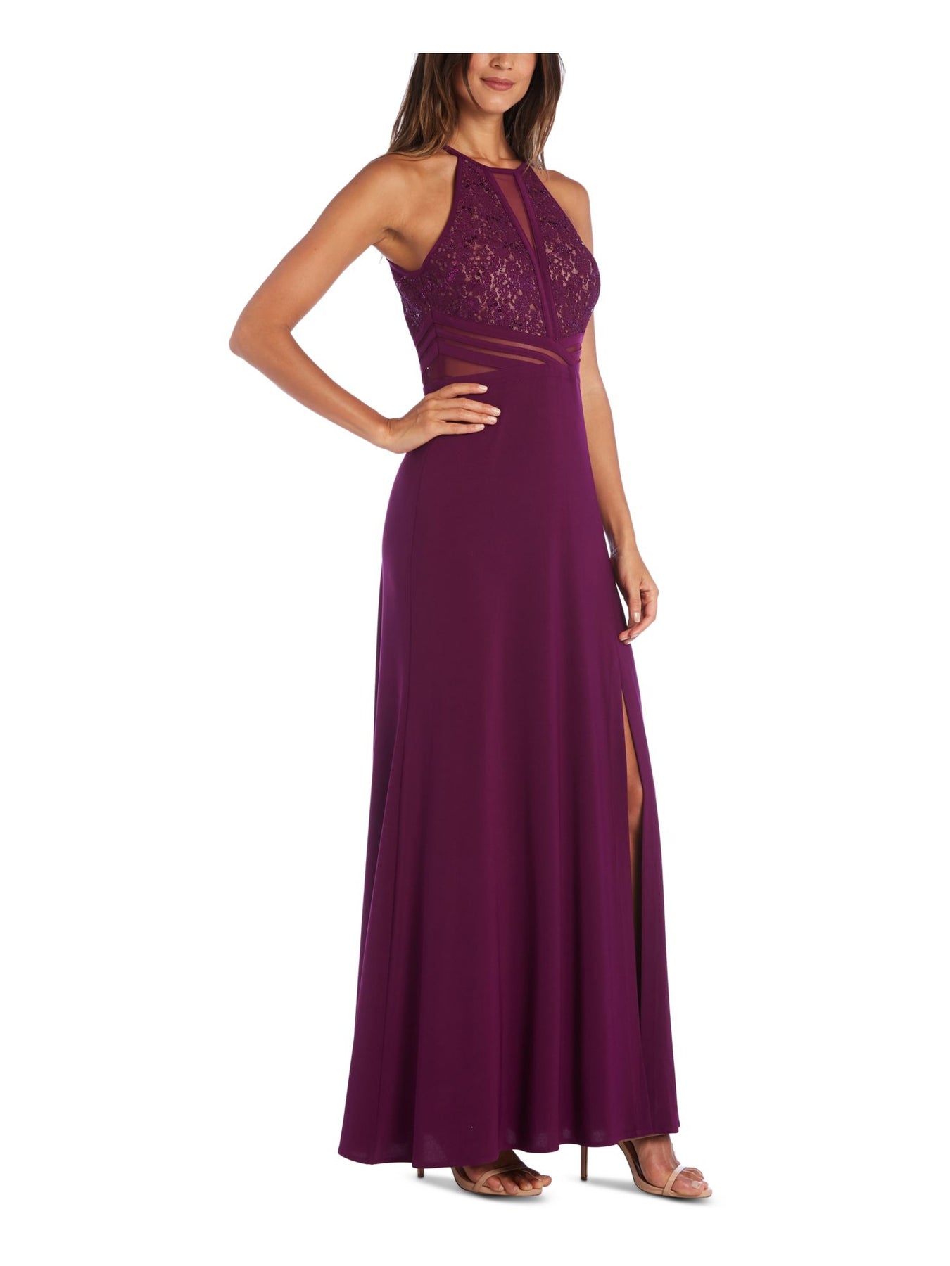 Womens Glitter Sleeveless Halter Full-Length Formal Pleated Dress