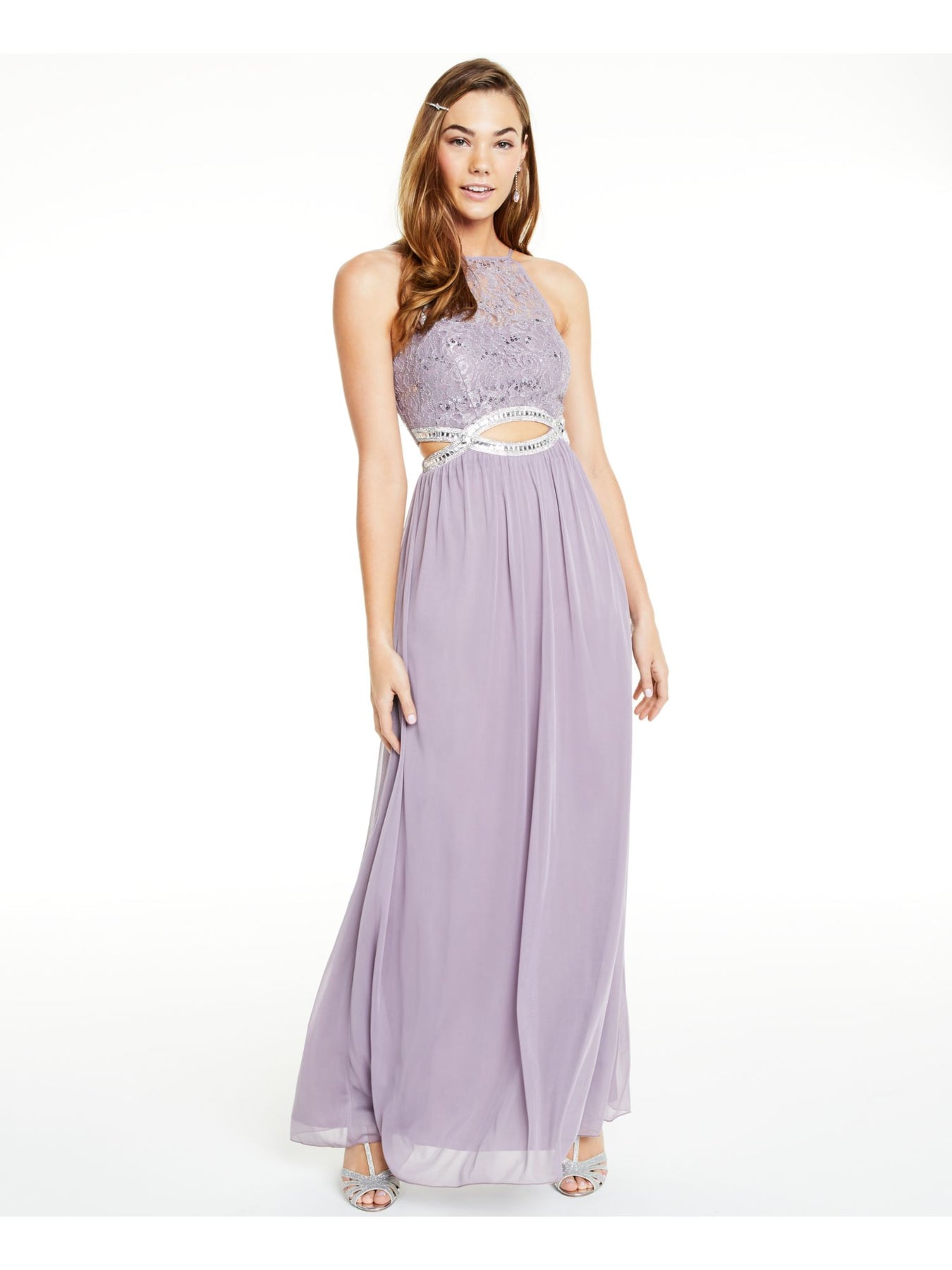 SPEECHLESS Womens Purple Sequined Cut Out Sleeveless Halter Full-Length Formal Empire Waist Dress Juniors 7