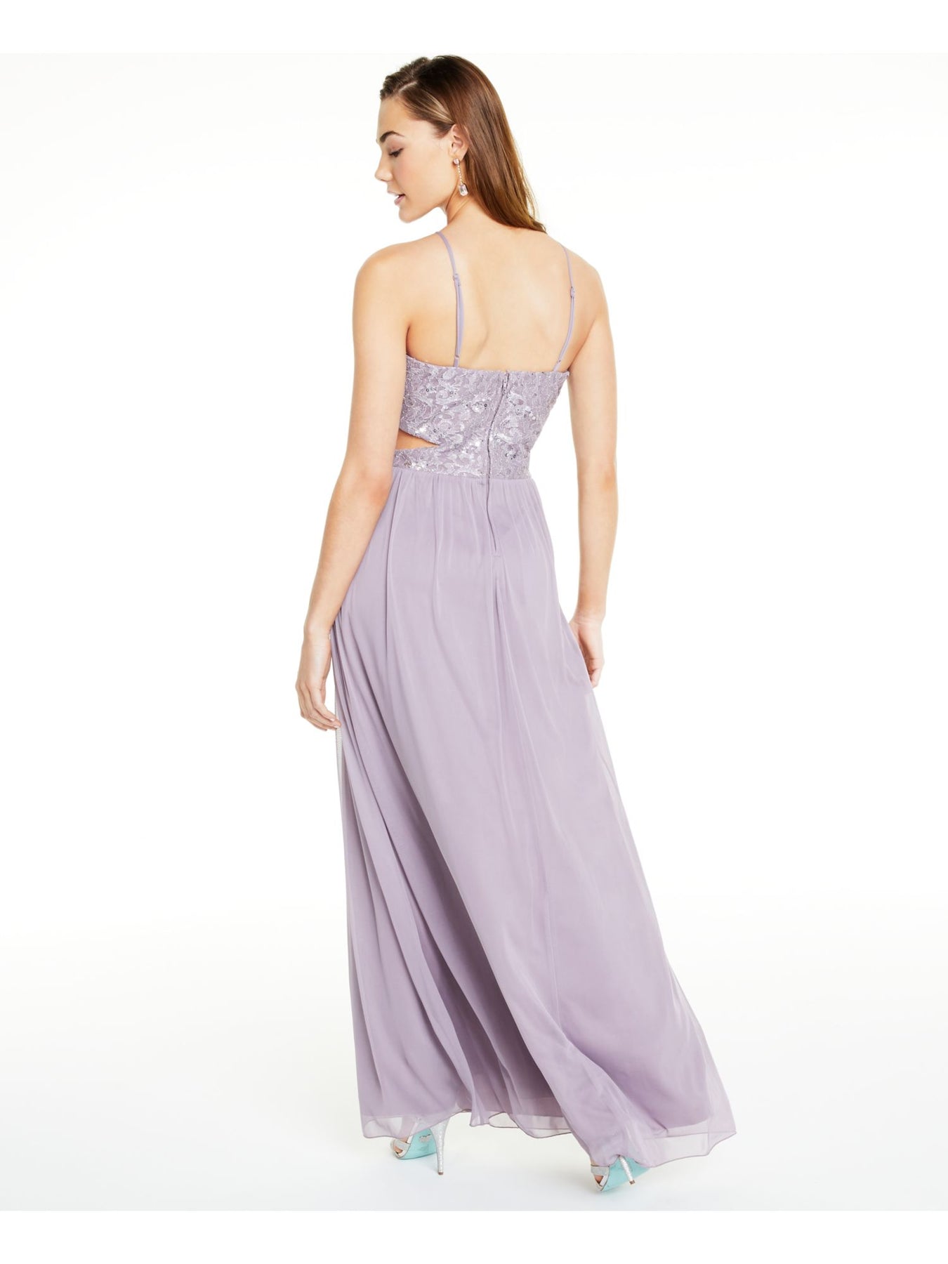 SPEECHLESS Womens Purple Sequined Cut Out Sleeveless Halter Full-Length Empire Waist Prom Dress 3