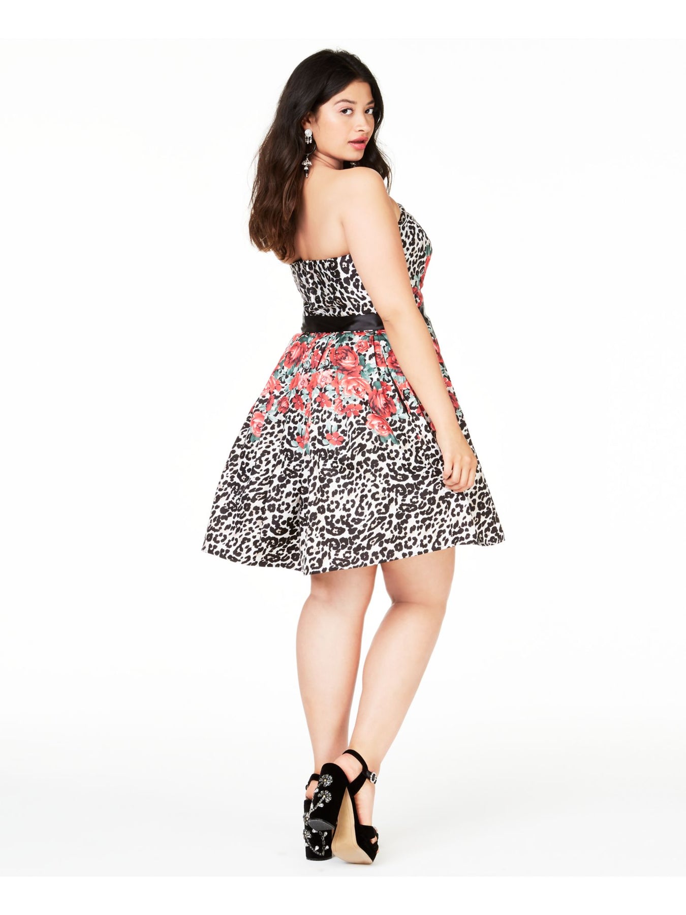 TEEZE ME Womens Black Belted Printed Sleeveless Sweetheart Neckline Knee Length Formal Fit + Flare Dress Juniors 16