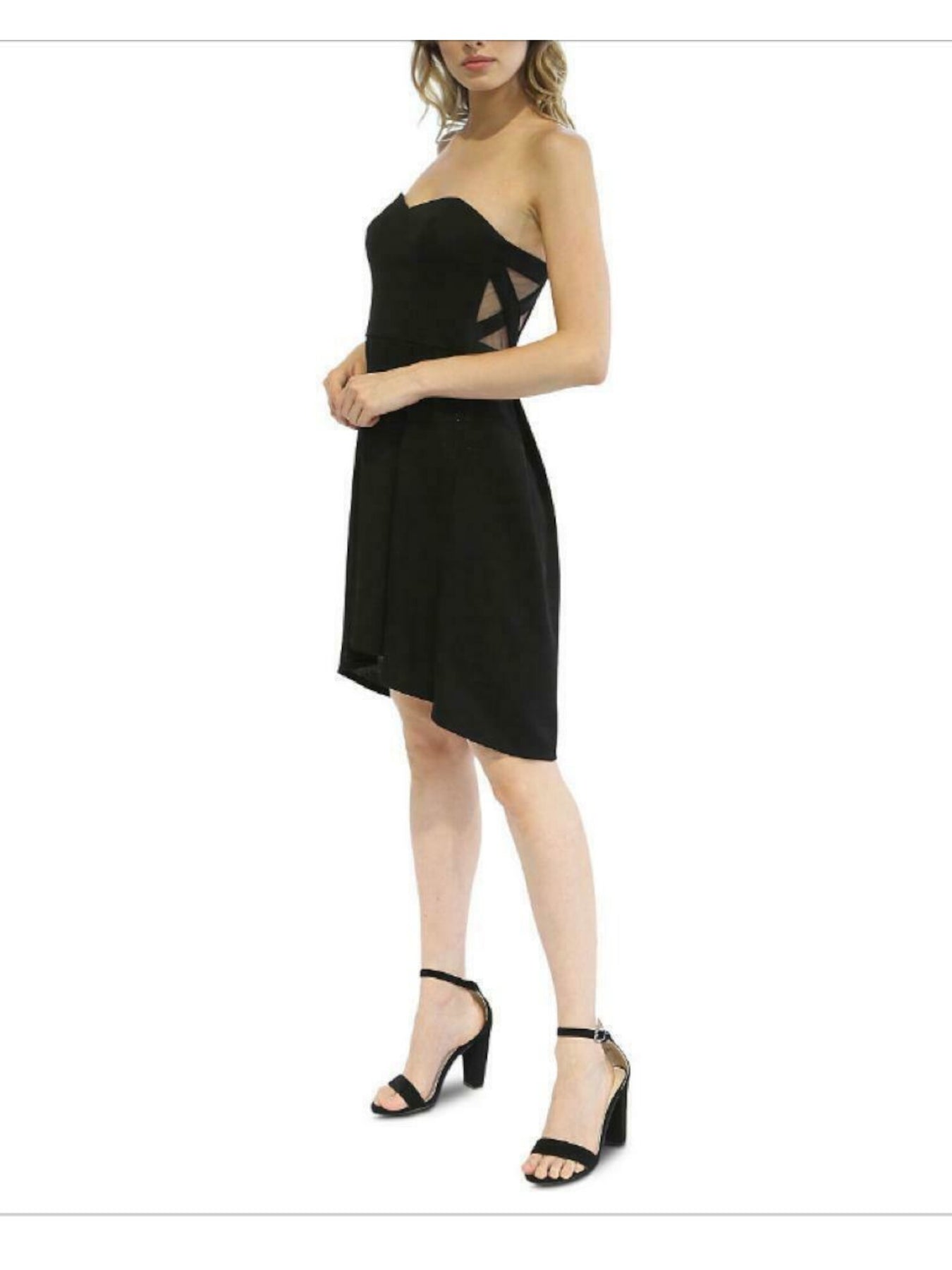 TEEZE ME Womens Black Zippered High-low Illusion Detail Sleeveless Strapless Short Party Fit + Flare Dress S