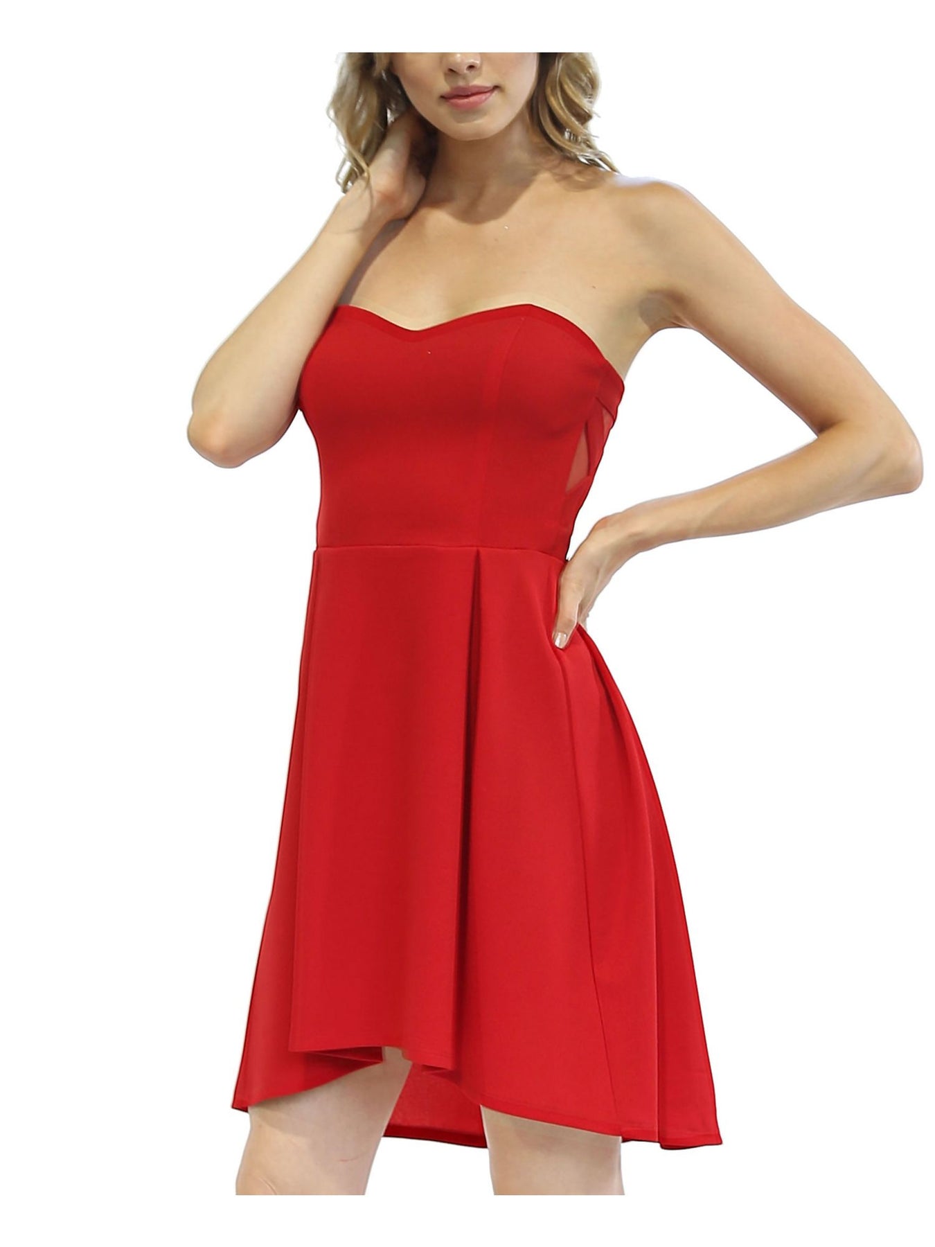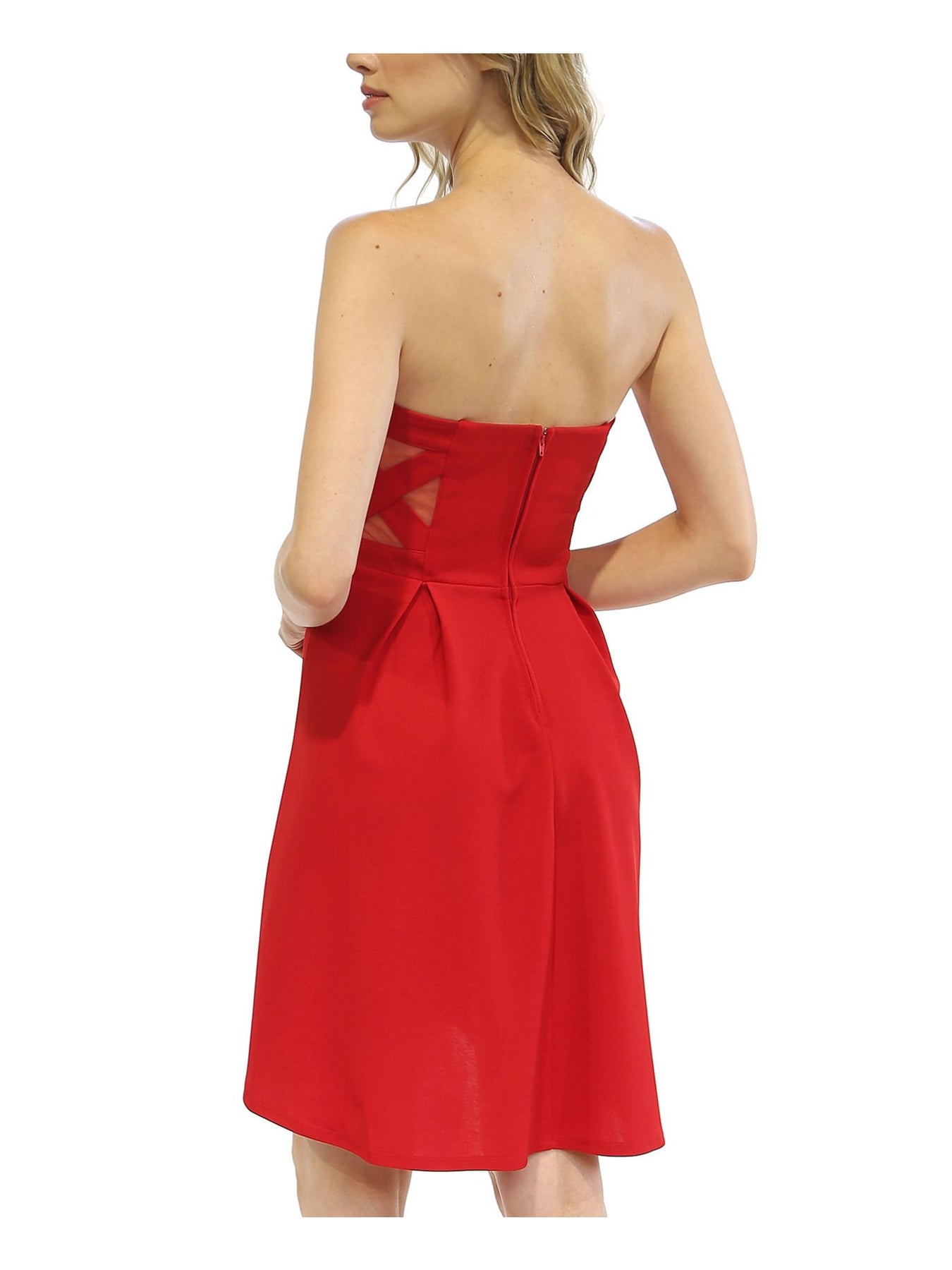 TEEZE ME Womens Red Zippered High-low Strapless Short Party Fit + Flare Dress L