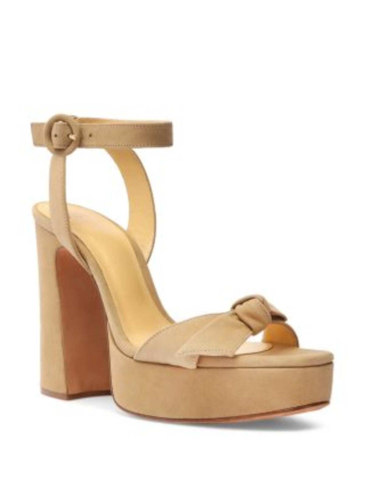 ALEXANDRE BIRMAN Womens Beige Padded 1" Platform Bow Accent Ankle Strap Clarita Almond Toe Block Heel Buckle Leather Heeled Sandal 39