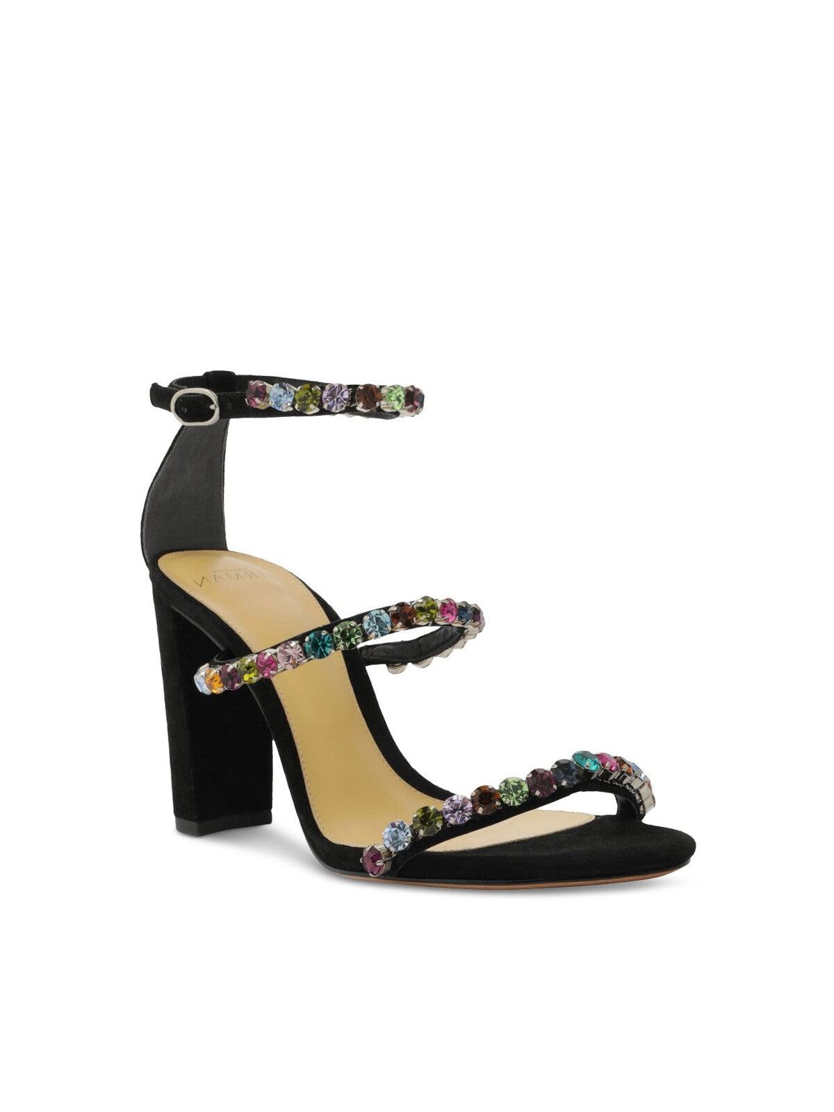Womens Black Ankle Strap Padded Embellished Strappy Alexa Almond Toe Block Heel Buckle Leather Dress Heeled