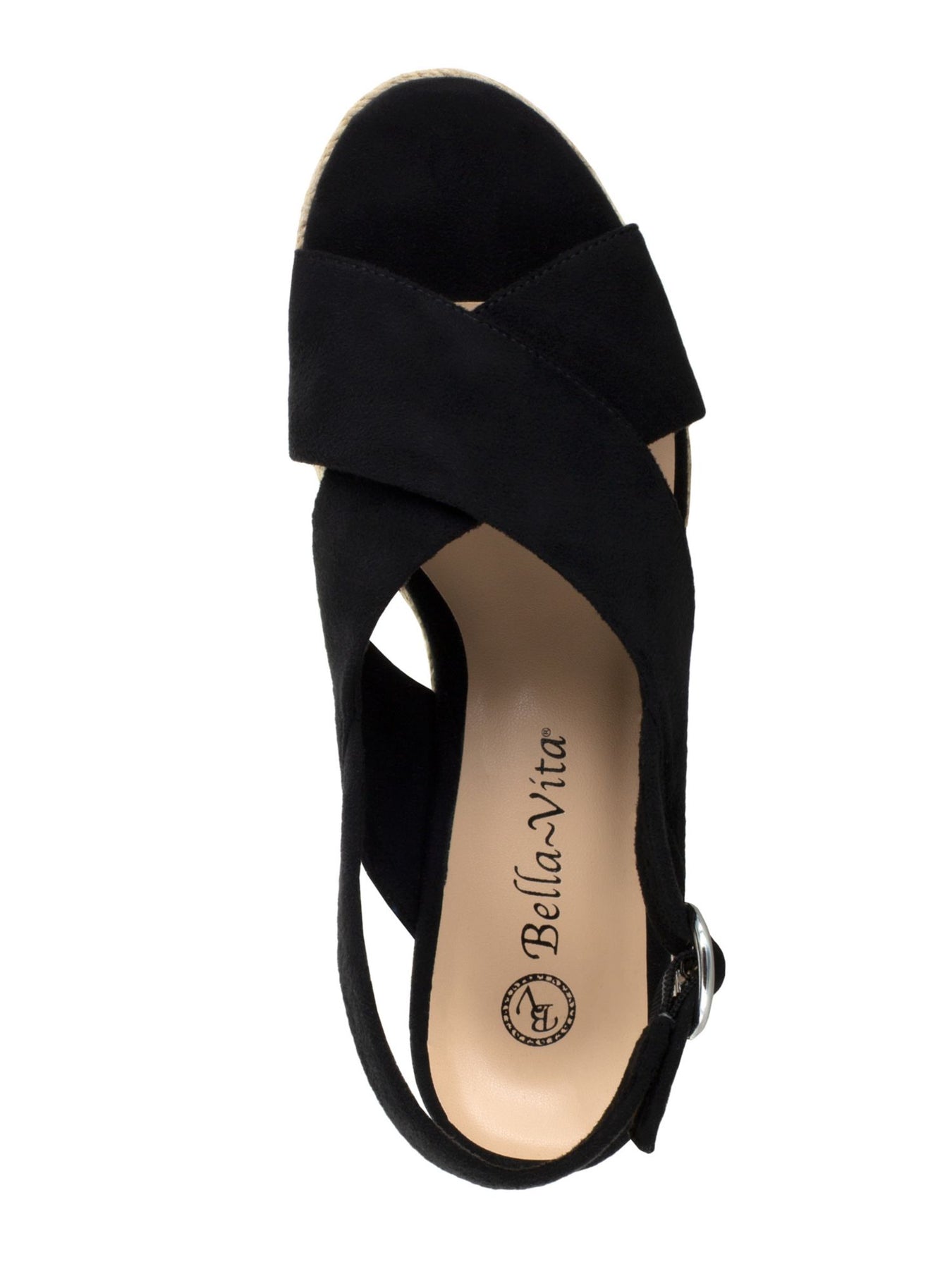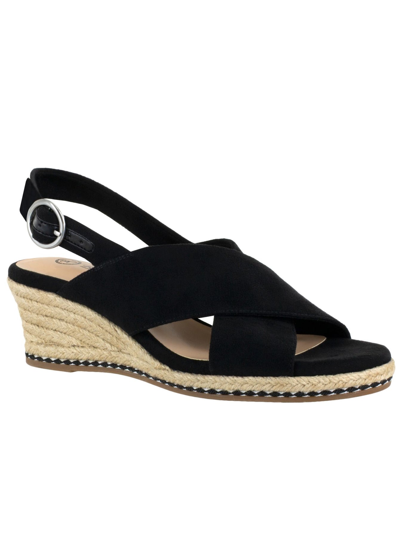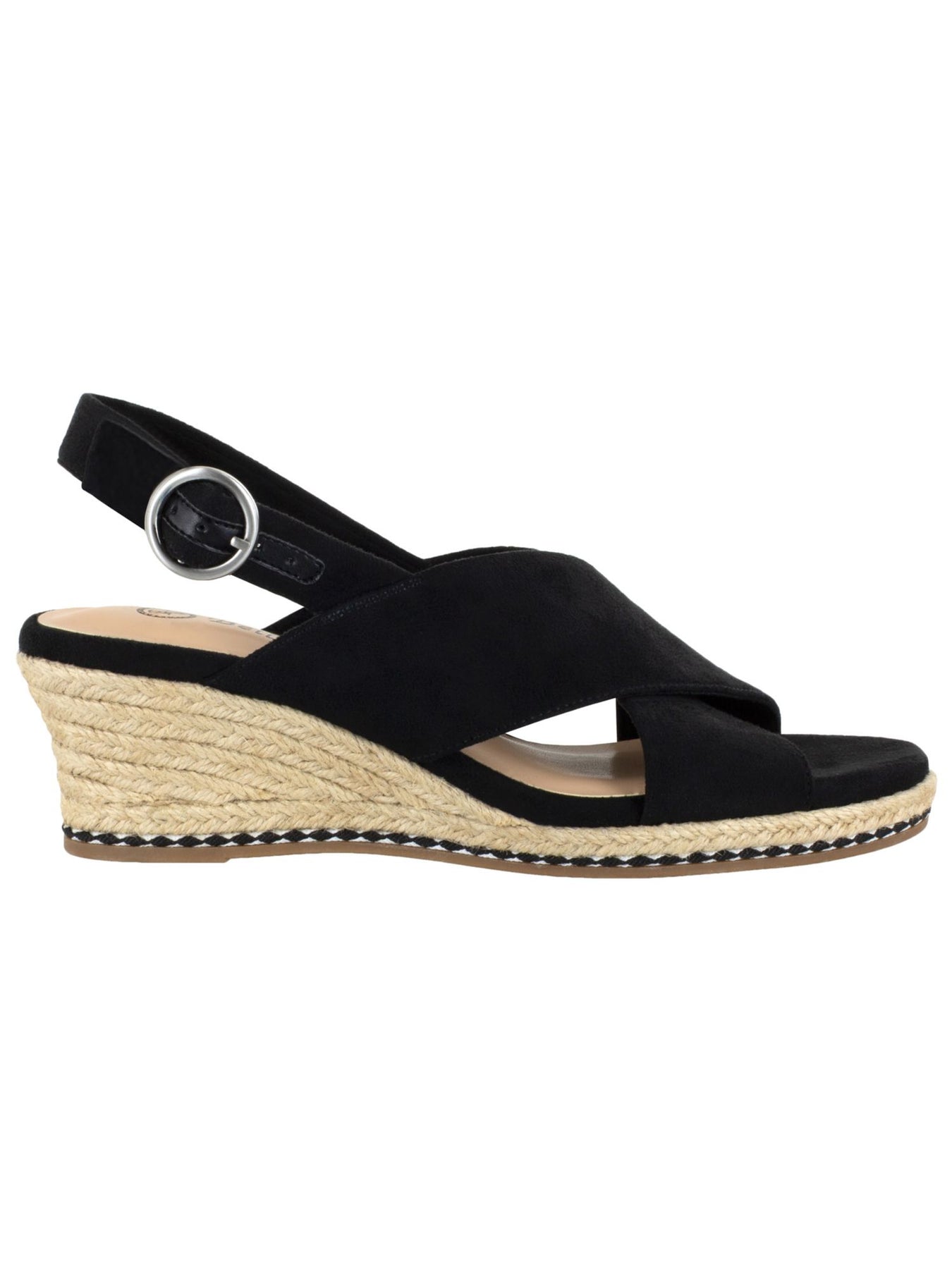 Womens Black Jute Wrapped Crisscross Straps Braided Accent Adjustable Strap Cushioned Nadette Ii Round Toe Wedge Buckle Espadrille Shoes M