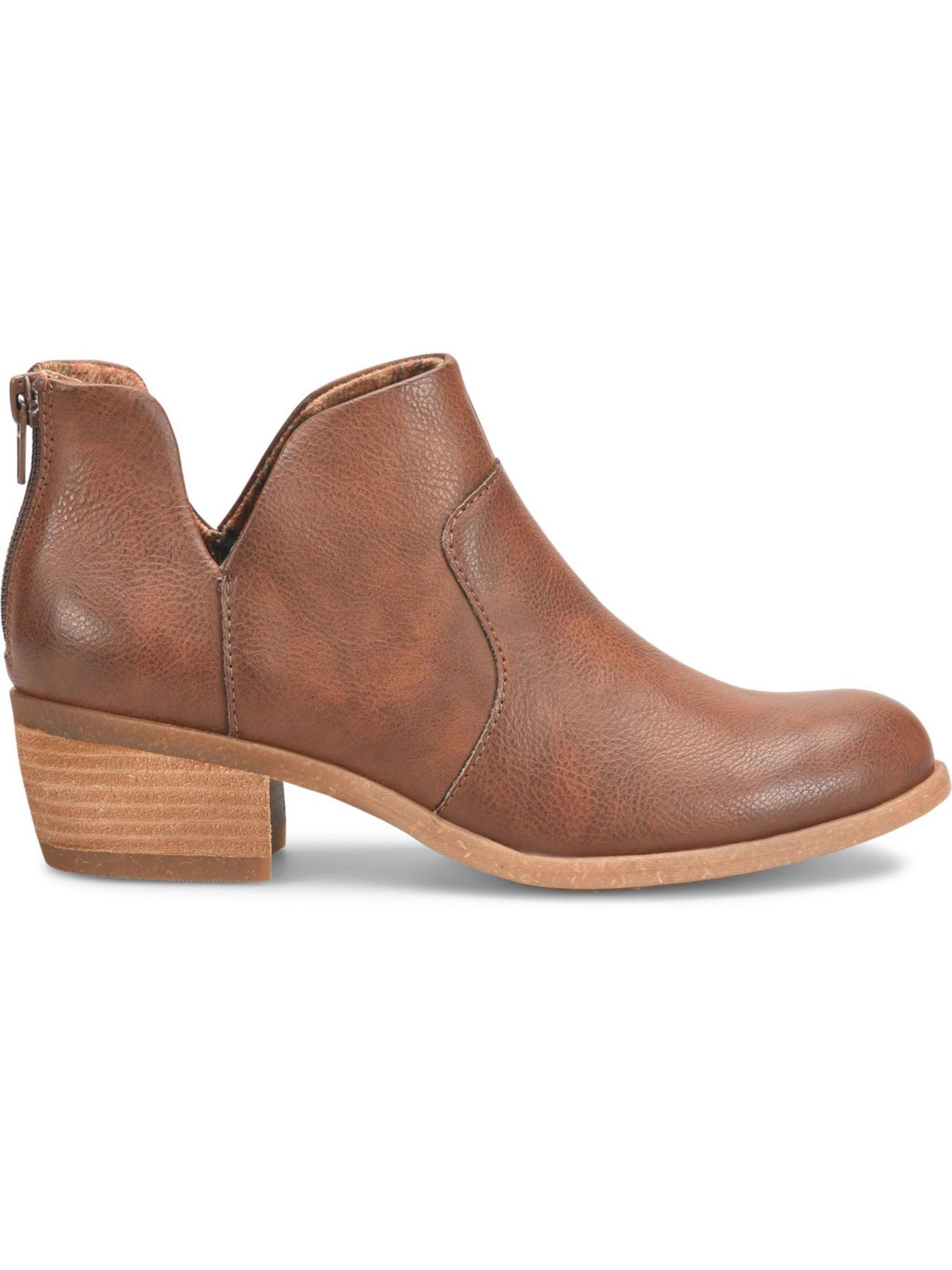 Womens Brown Side Cut Outs Cushioned Breathable Lucy Round Toe Stacked Heel Zip-Up Shootie M