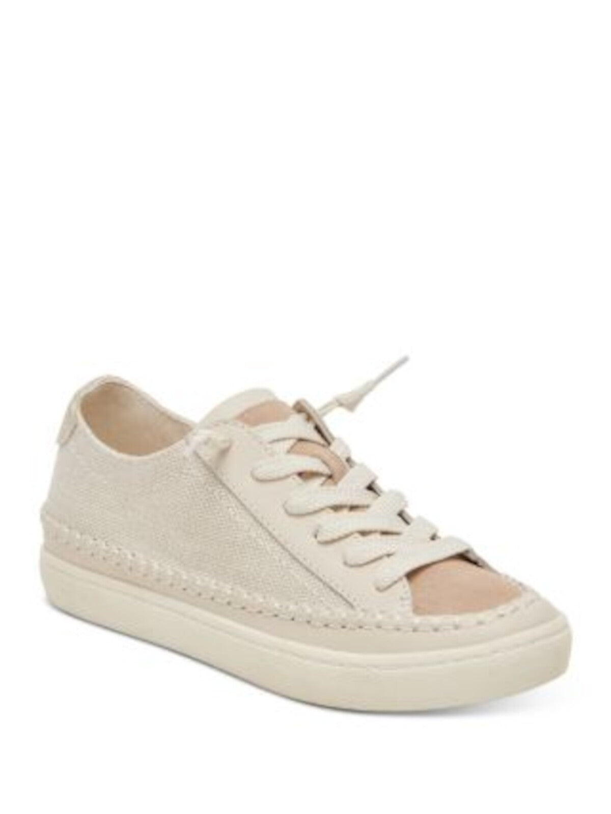 Womens Beige Mixed Media Cushioned Metallic Zolen Round Toe Platform Lace-Up Sneakers Shoes