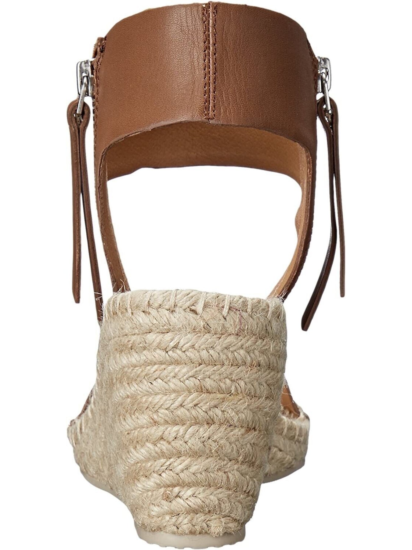 Womens Caramel Brown Padded Gisele Round Toe Wedge Leather Espadrille Shoes
