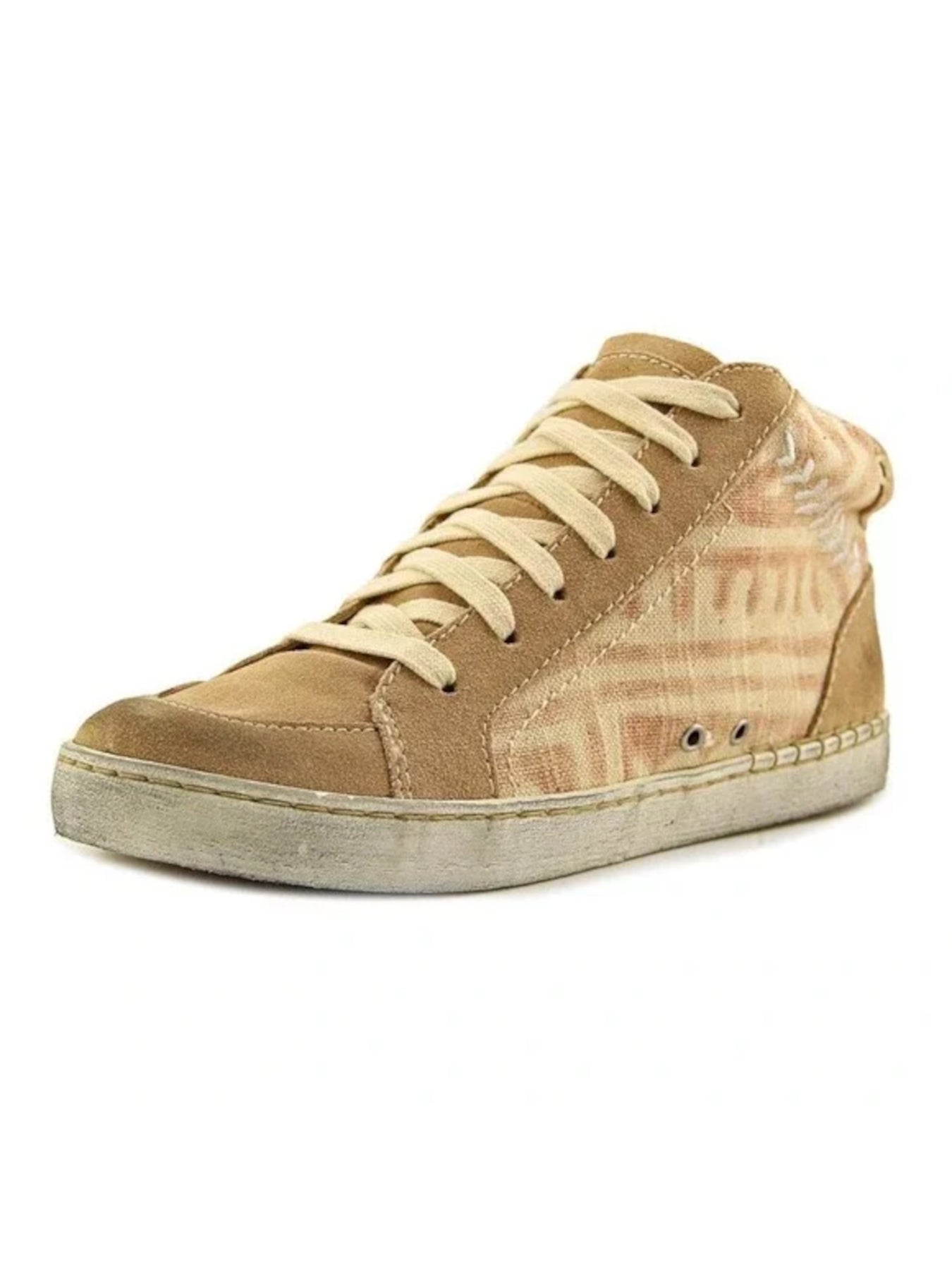 Womens Sand Beige Mixed Media Zane Round Toe Lace-Up Leather Sneakers Shoes M