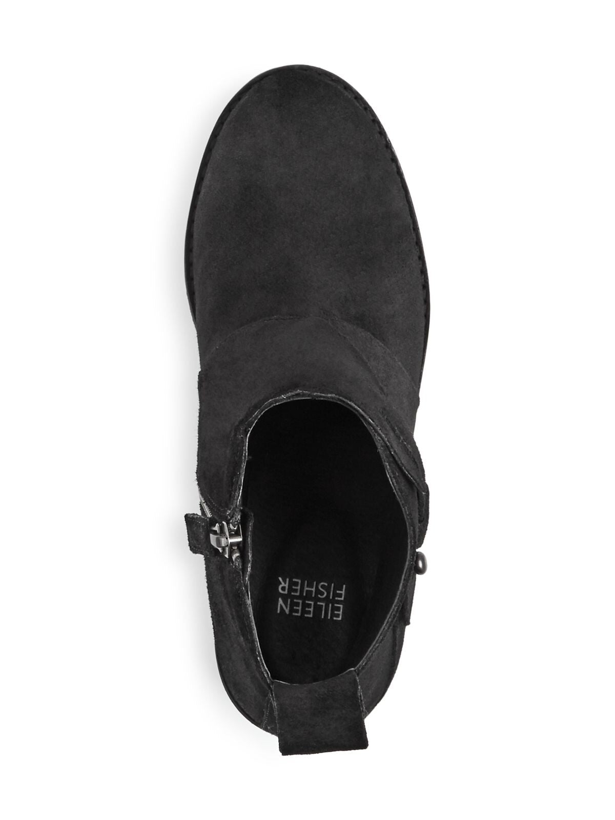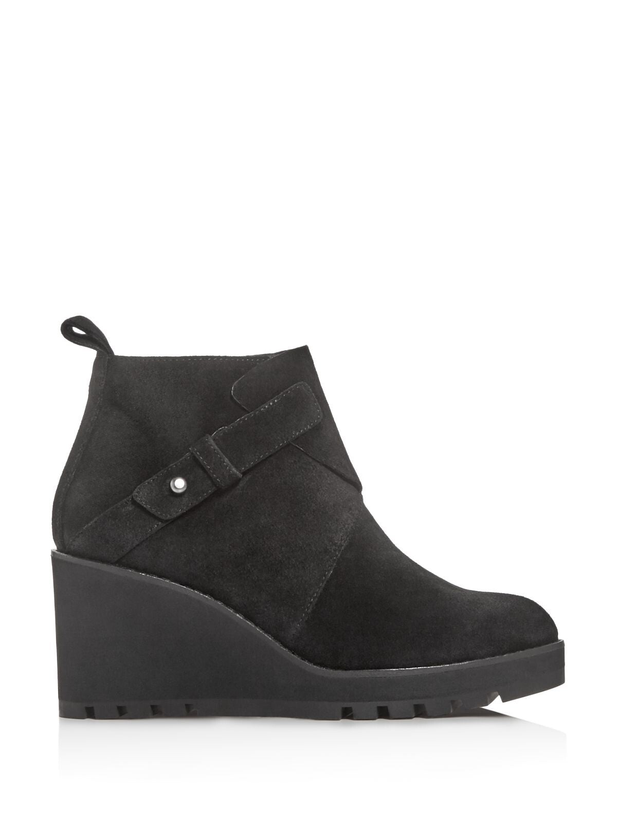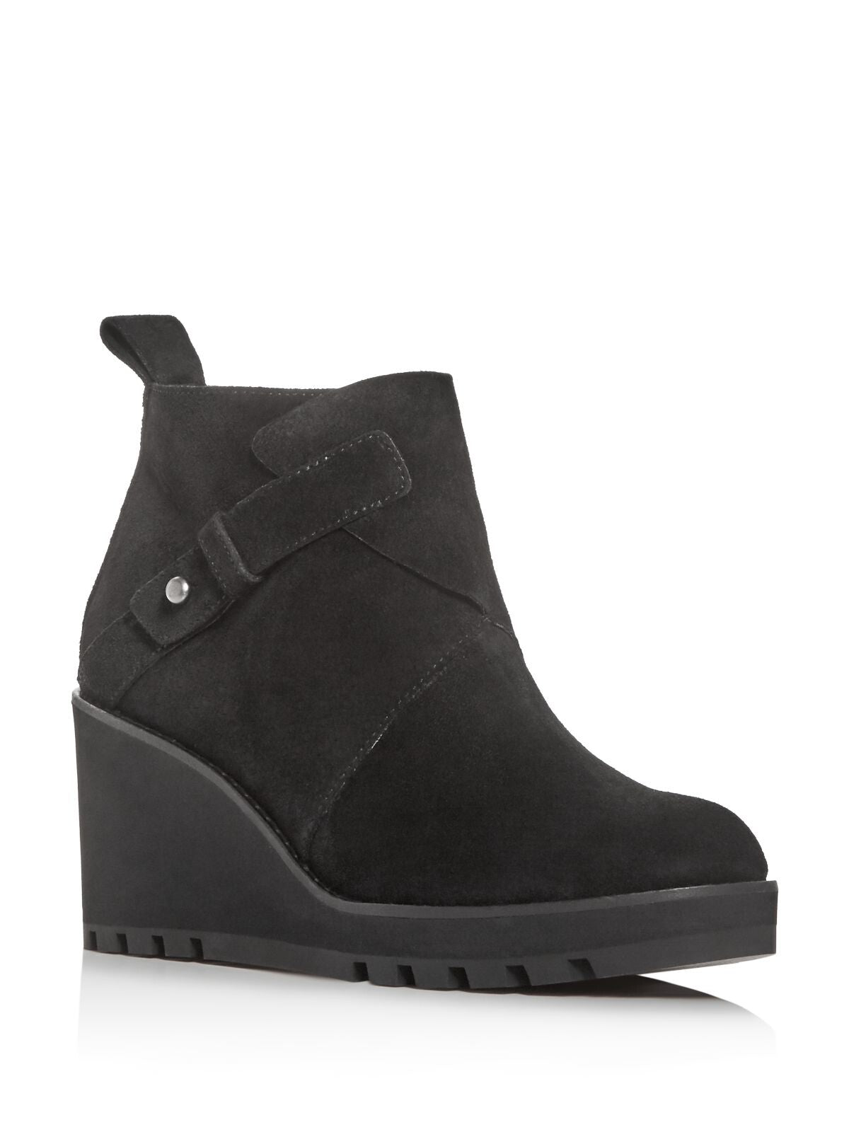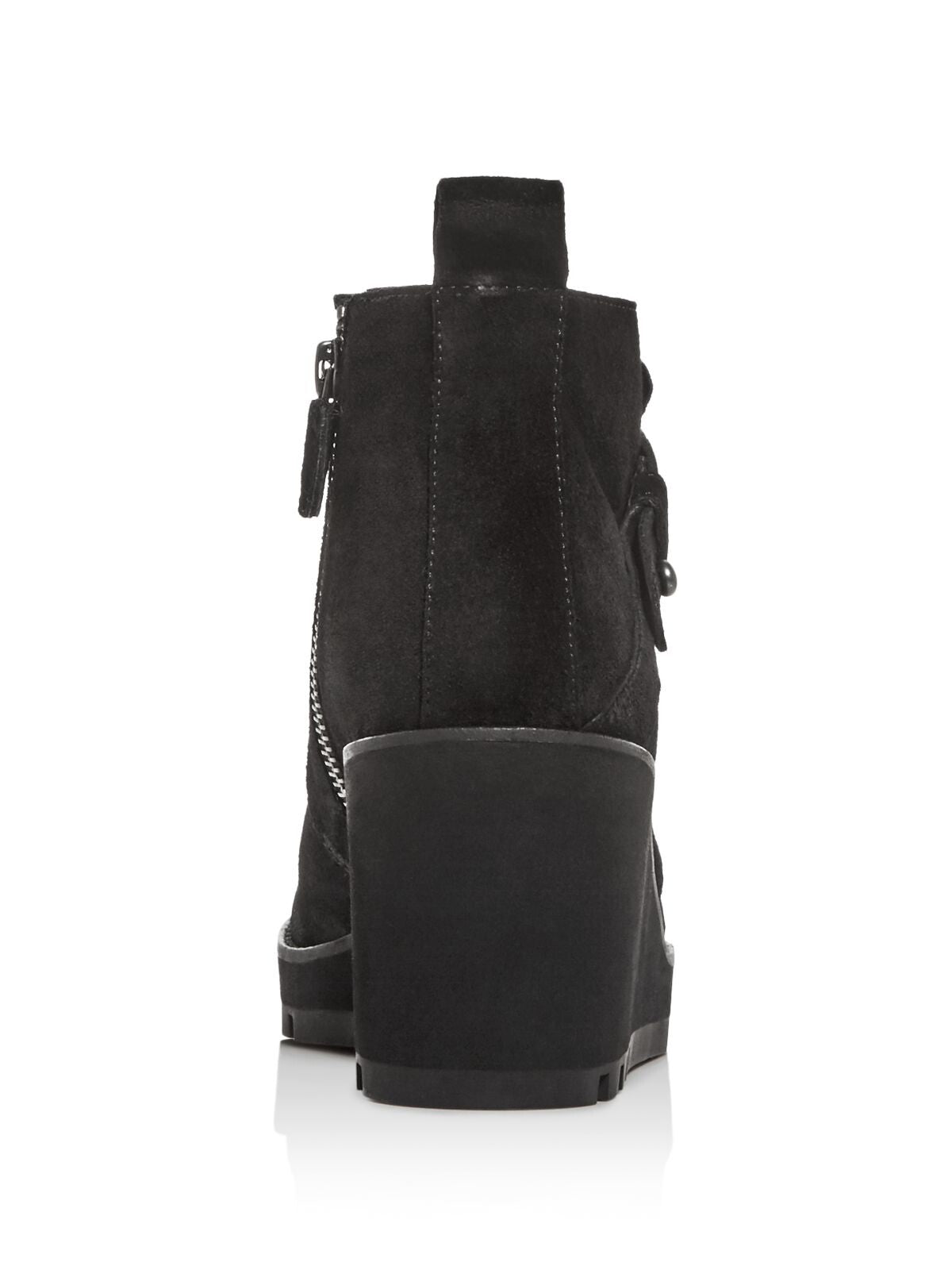Womens Black 1" Platform Pull Tab Treaded Comfort Tinker Round Toe Wedge Zip-Up Leather Booties
