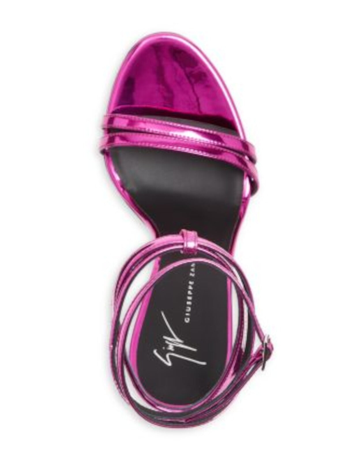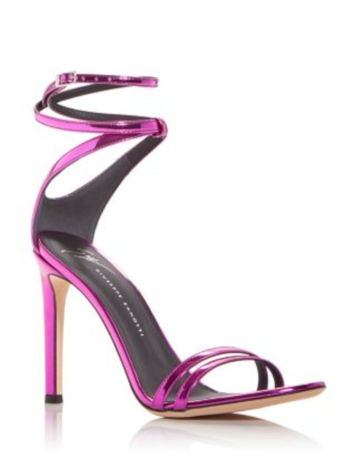 Womens Pink Ankle Strap Strappy Metallic Padded Shot Round Toe Stiletto Buckle Heeled