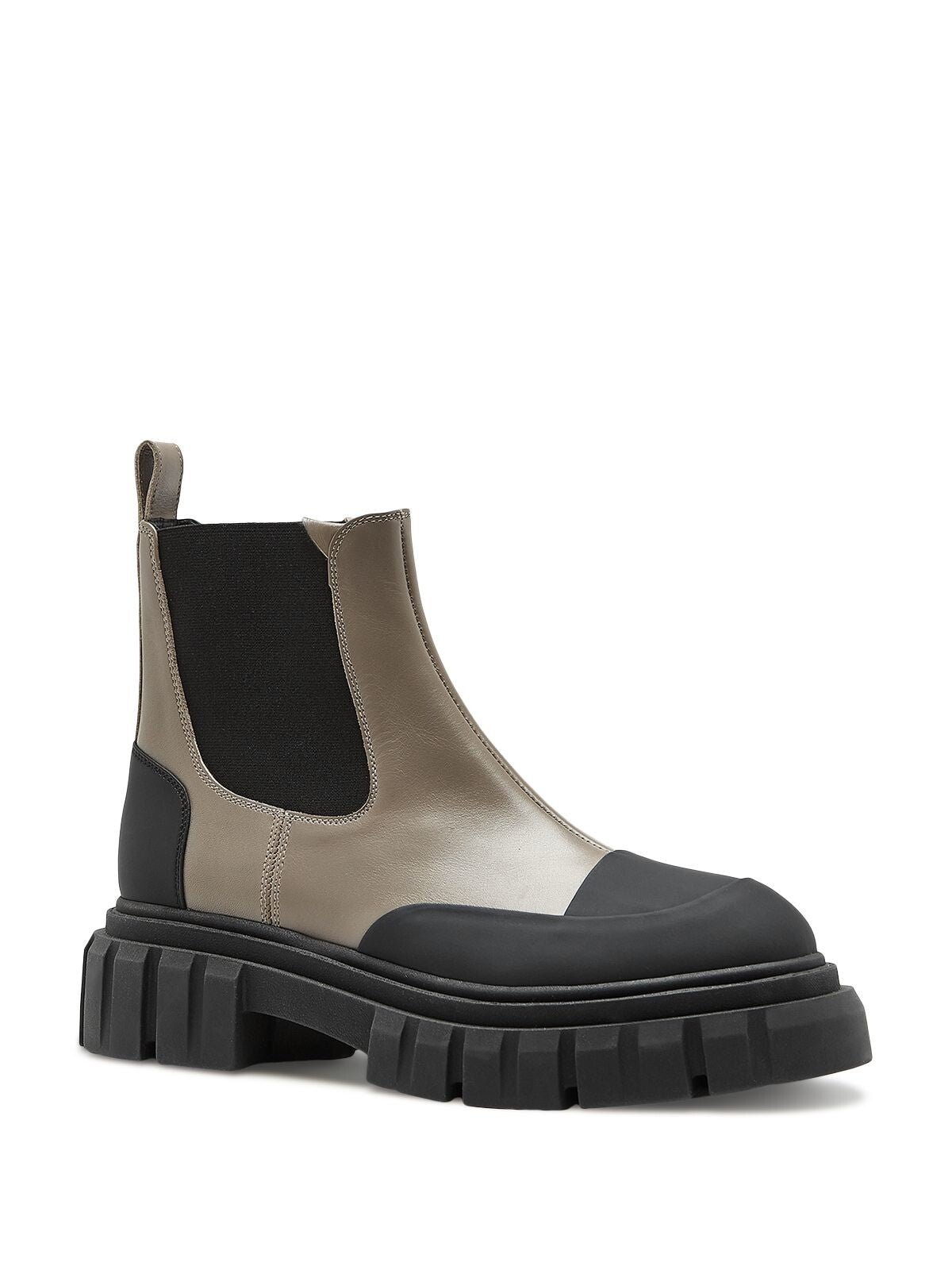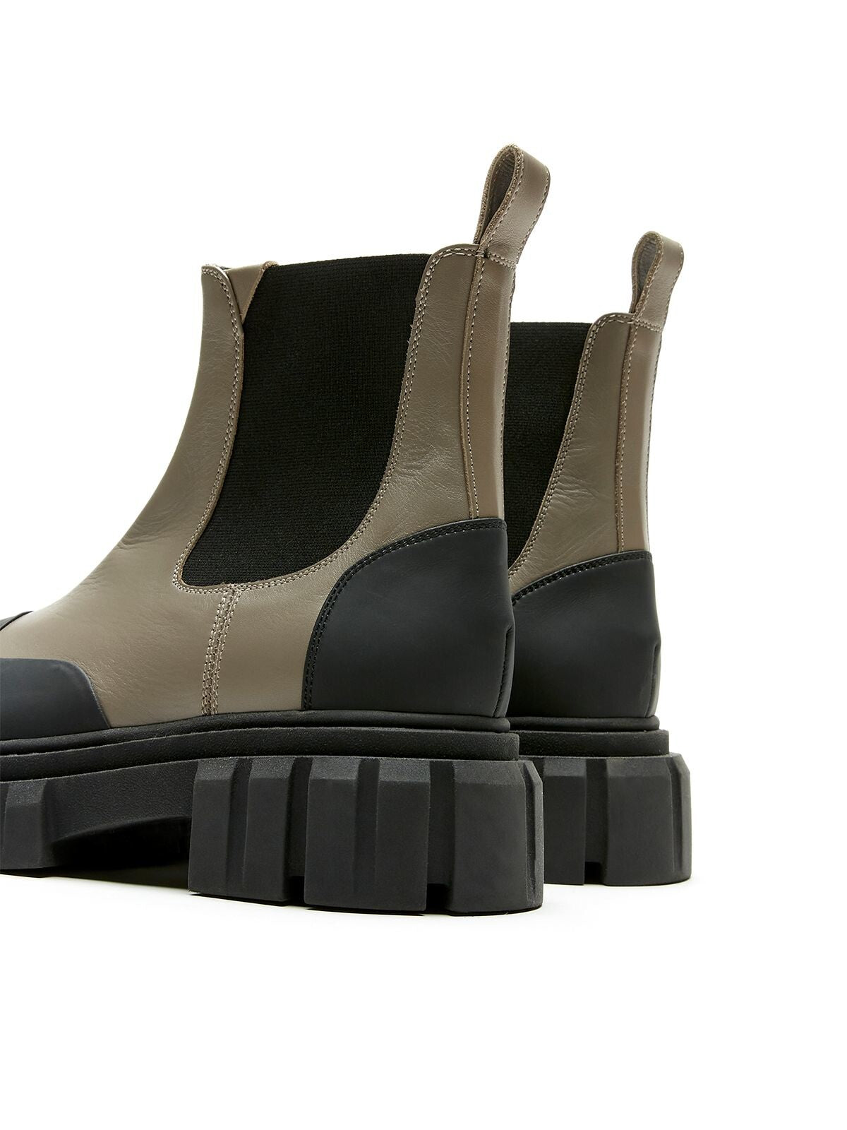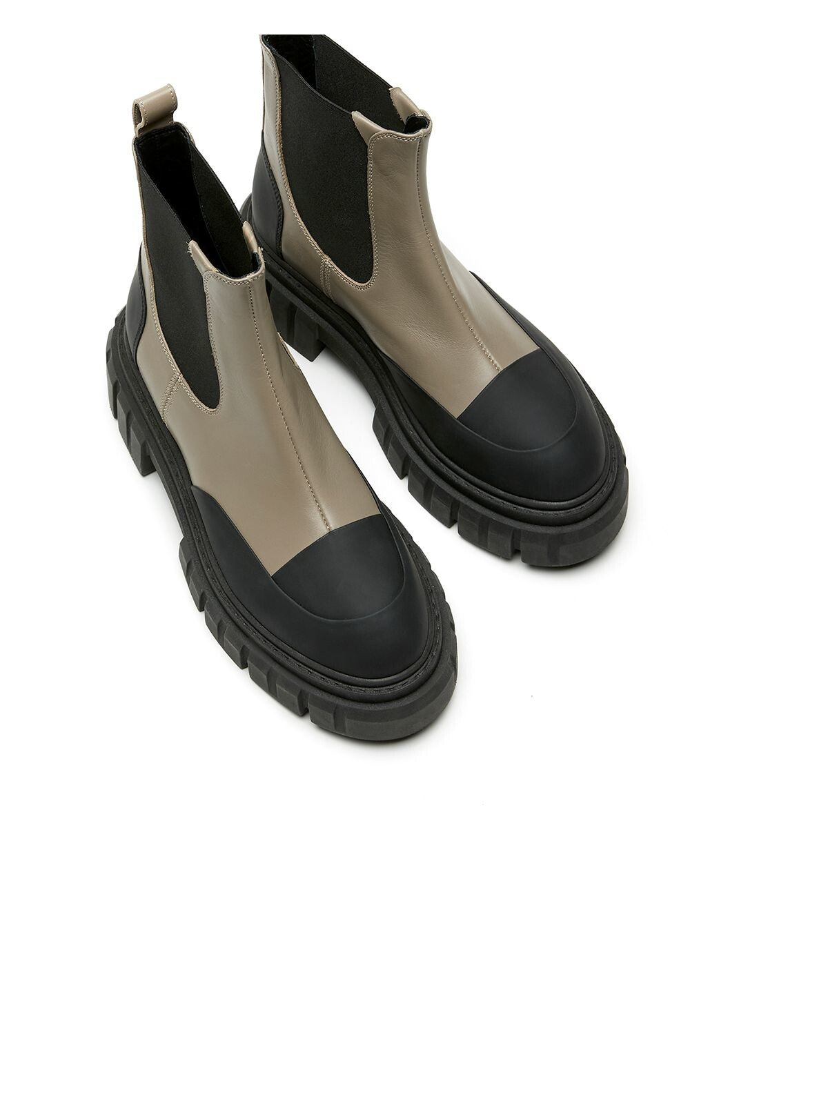 Womens Taupe Beige Pull Tab Arch Support Goring Waterproof Kyree Round Toe Block Heel Leather Booties