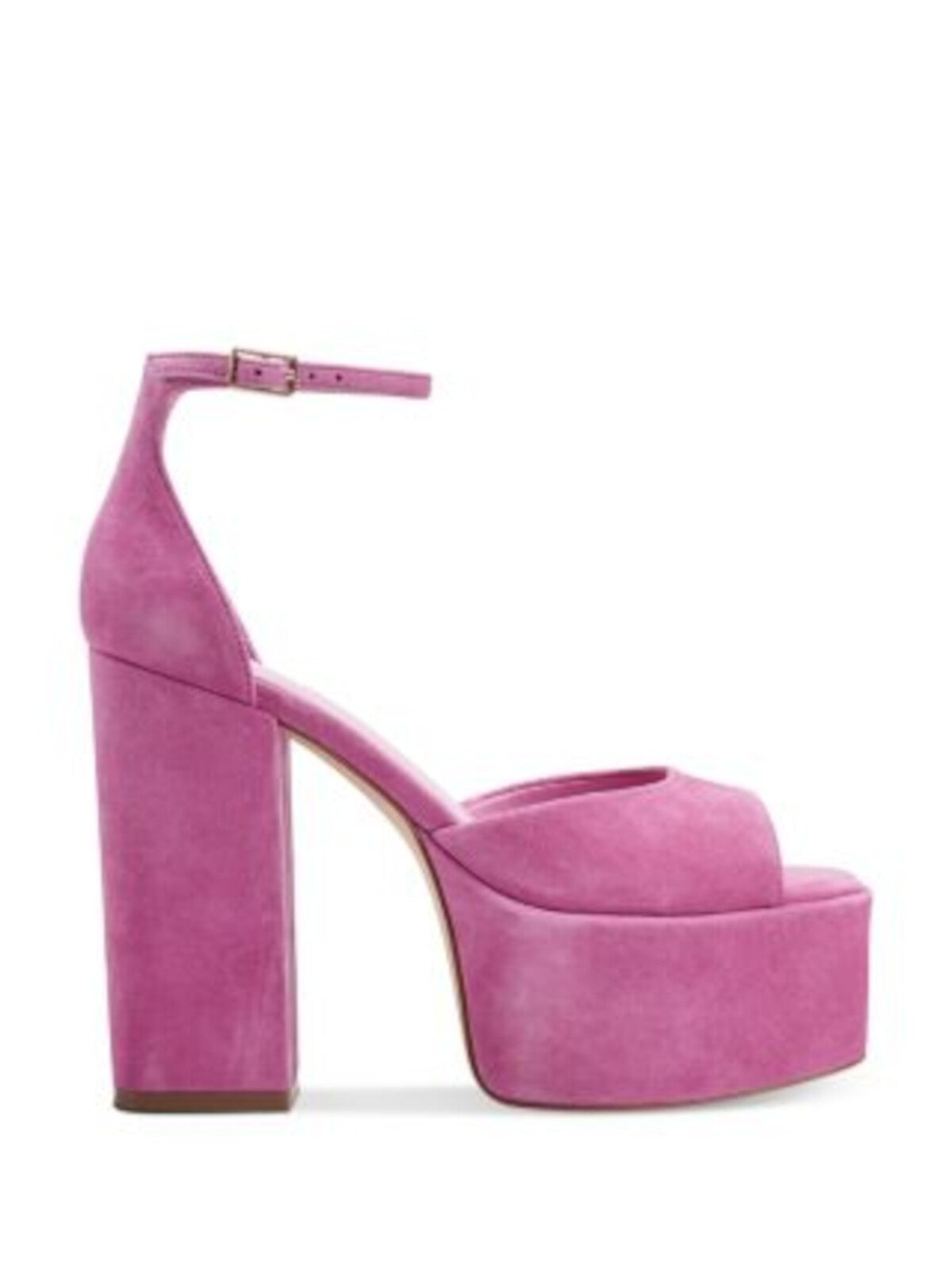 Womens Pink 2" Platform Ankle Strap Cushioned Mldella Square Toe Block Heel Buckle Leather Heeled M