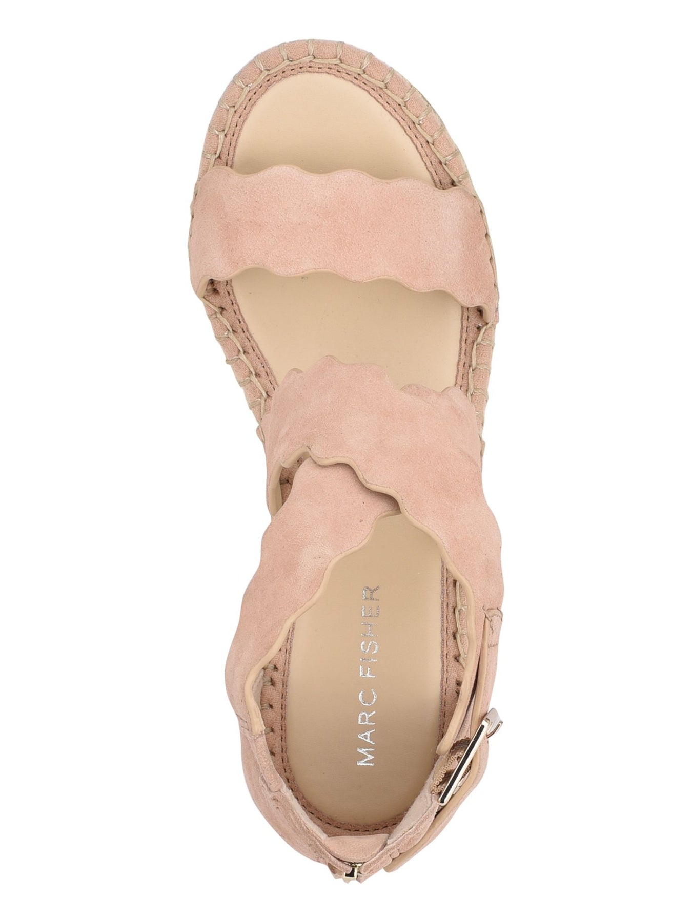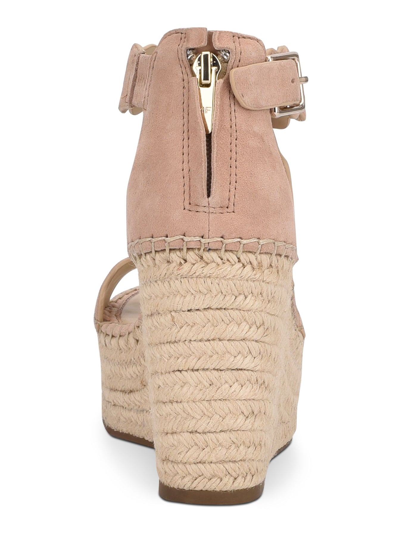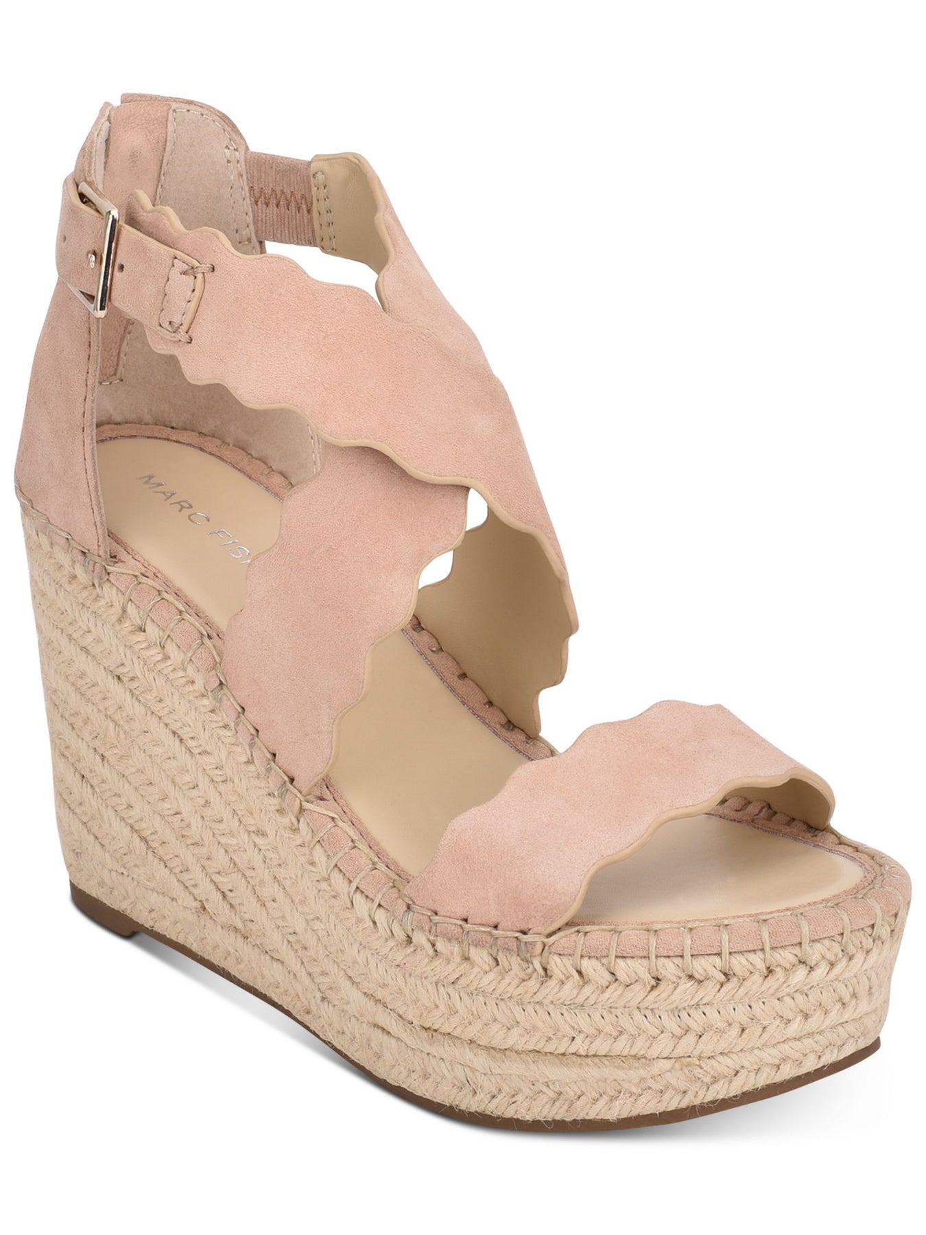 Womens Beige Scalloped Crisscross Straps 1-1/2" Platform Gore Woven Lining Comfort Buckle Accent Calita Round Toe Wedge Zip-Up Leather Dress Espadrille Shoes M
