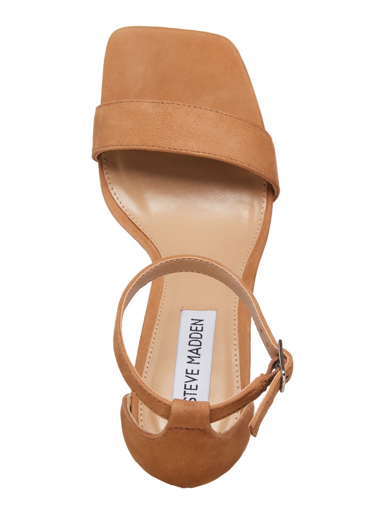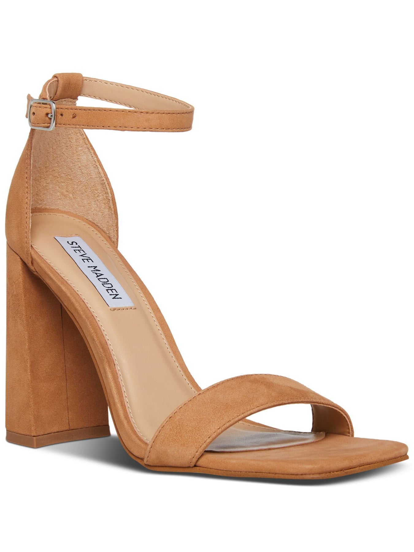 Womens Beige Ankle Strap Padded Tiaa Square Toe Block Heel Buckle Leather Dress Heeled M