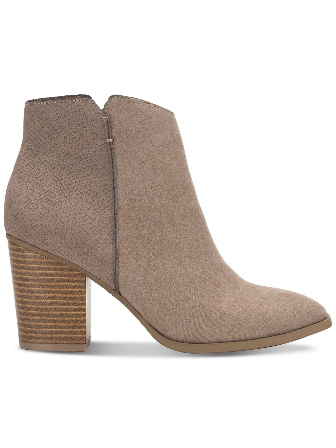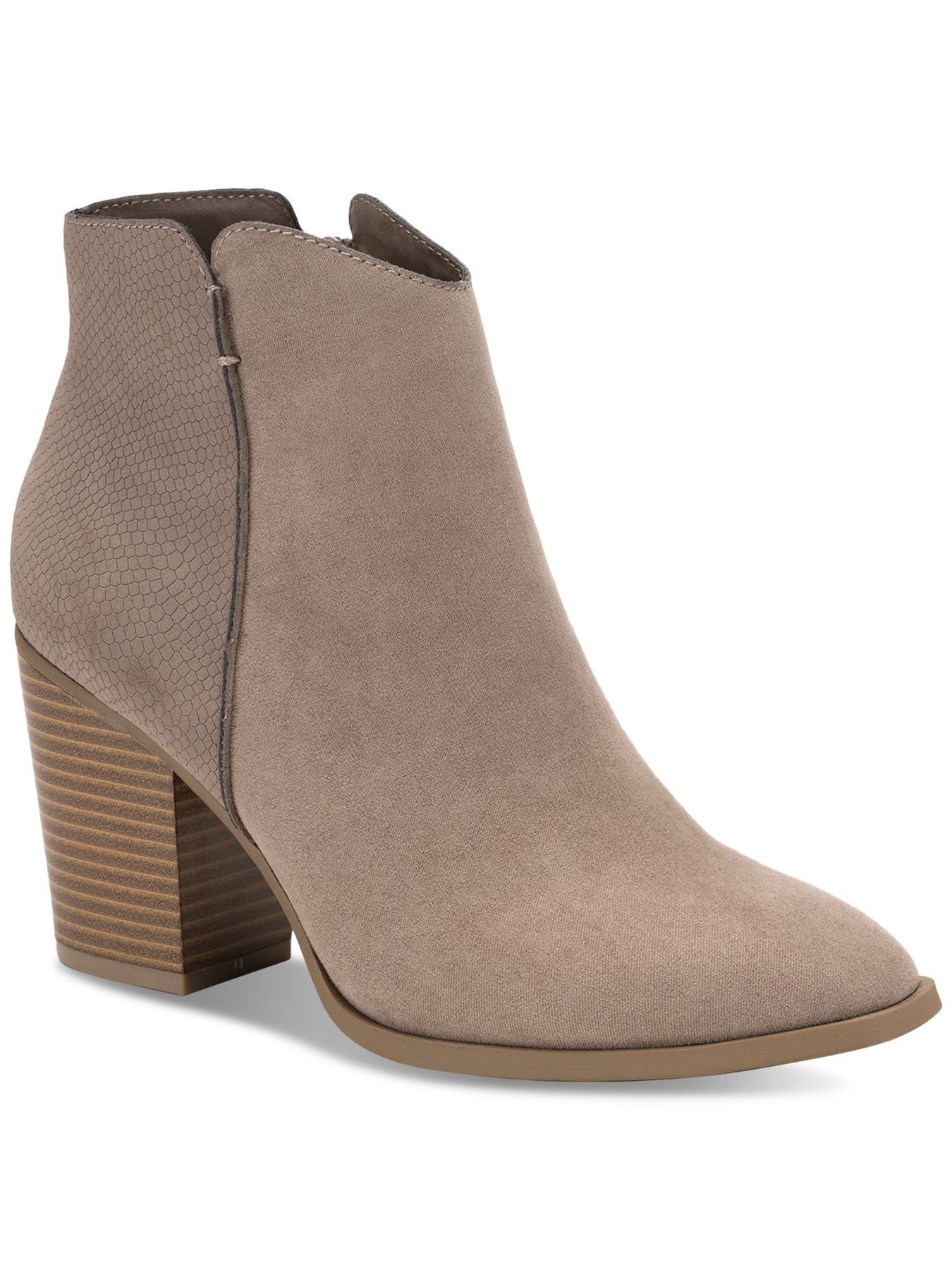 Womens Beige Cushioned Graceyy Round Toe Block Heel Zip-Up Booties M