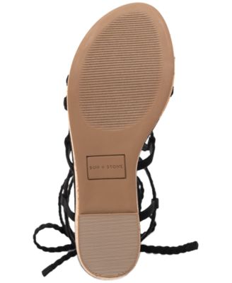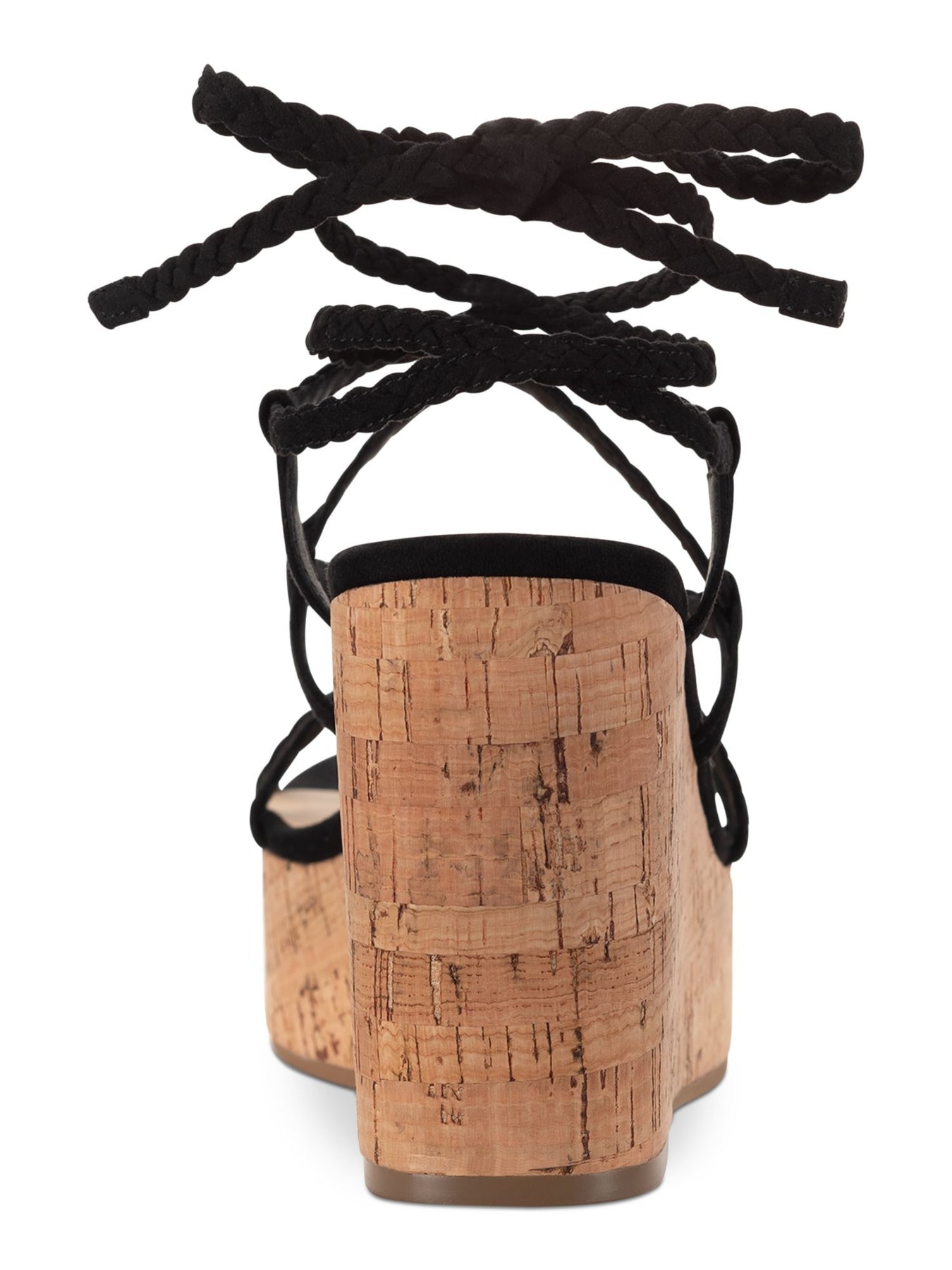 Womens Black 1-1/2" Platform Strappy Braided Trinnie Round Toe Wedge Lace-Up Heeled M