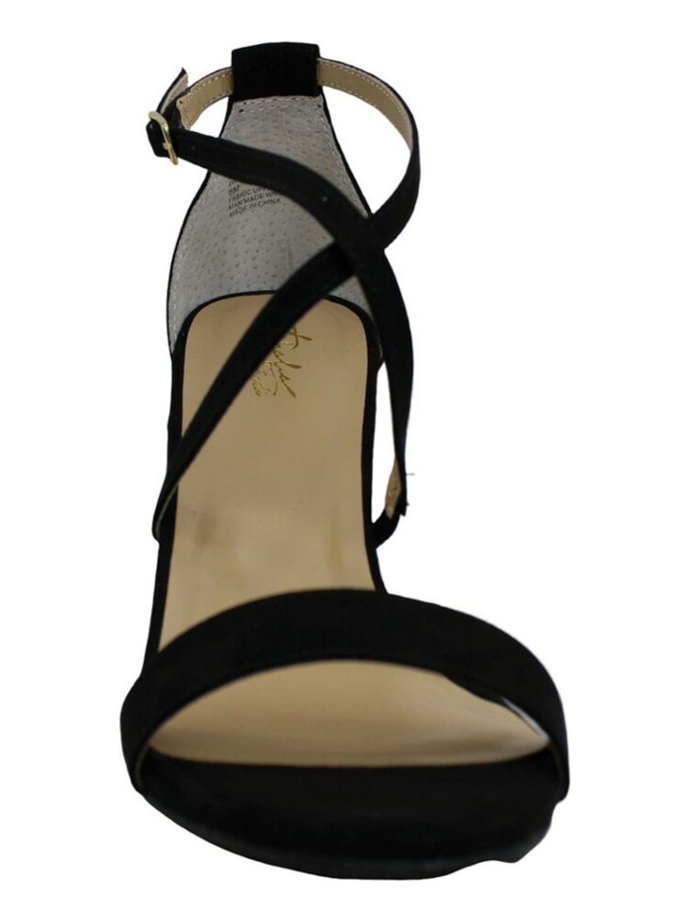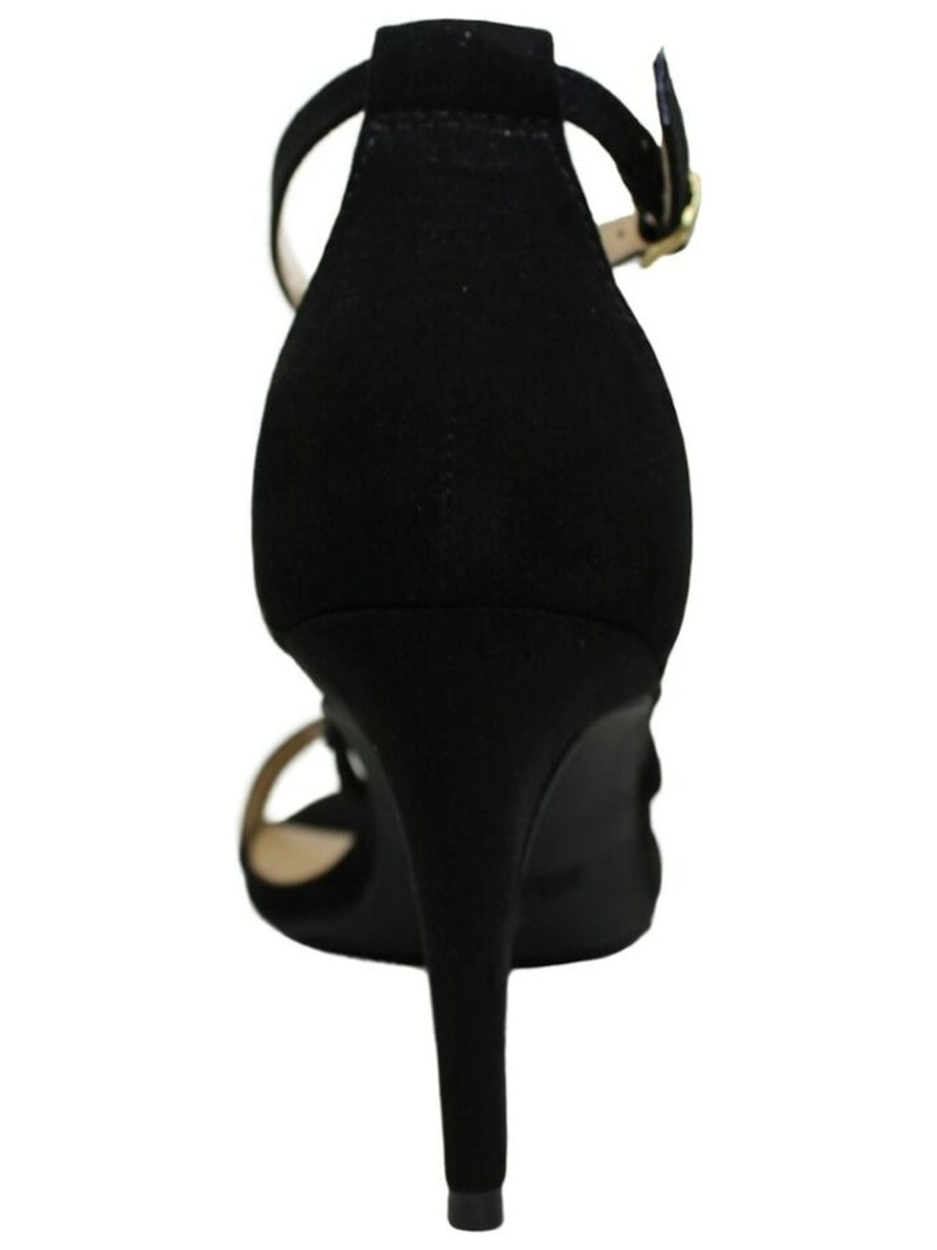 Womens Black Strappy Padded Darria Round Toe Stiletto Buckle Dress Heeled W