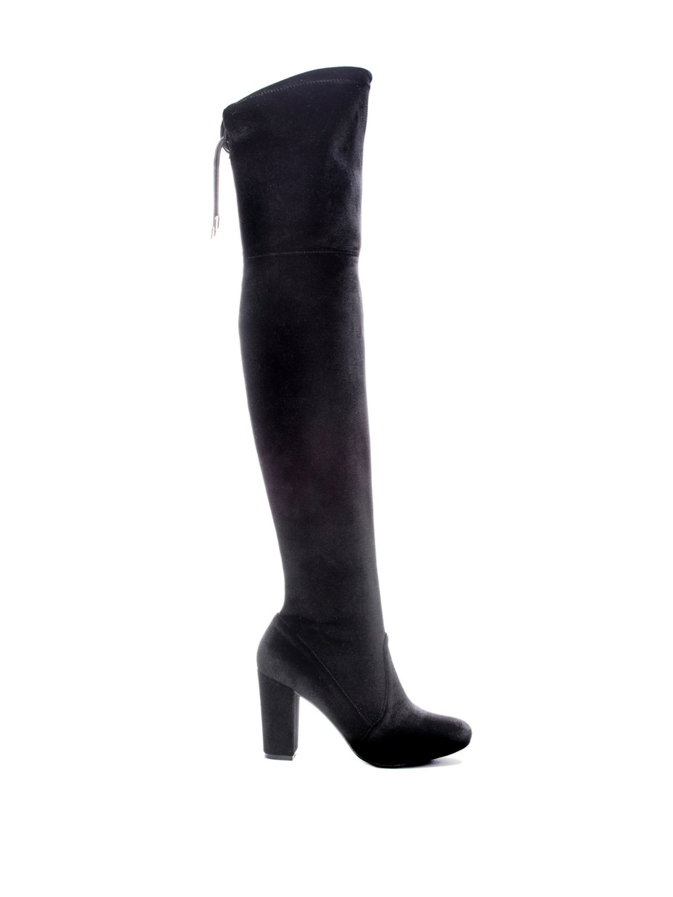 Womens Black Tie Velvet Fabric Comfort Bree Round Toe Block Heel Zip-Up Dress Heeled Boots