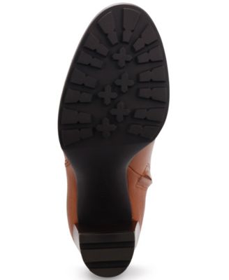 KENNETH COLE NEW YORK Womens Cognac Brown Lug Sole Padded Justin 2.0 Round Toe Block Heel Zip-Up Leather Heeled Boots 7 M