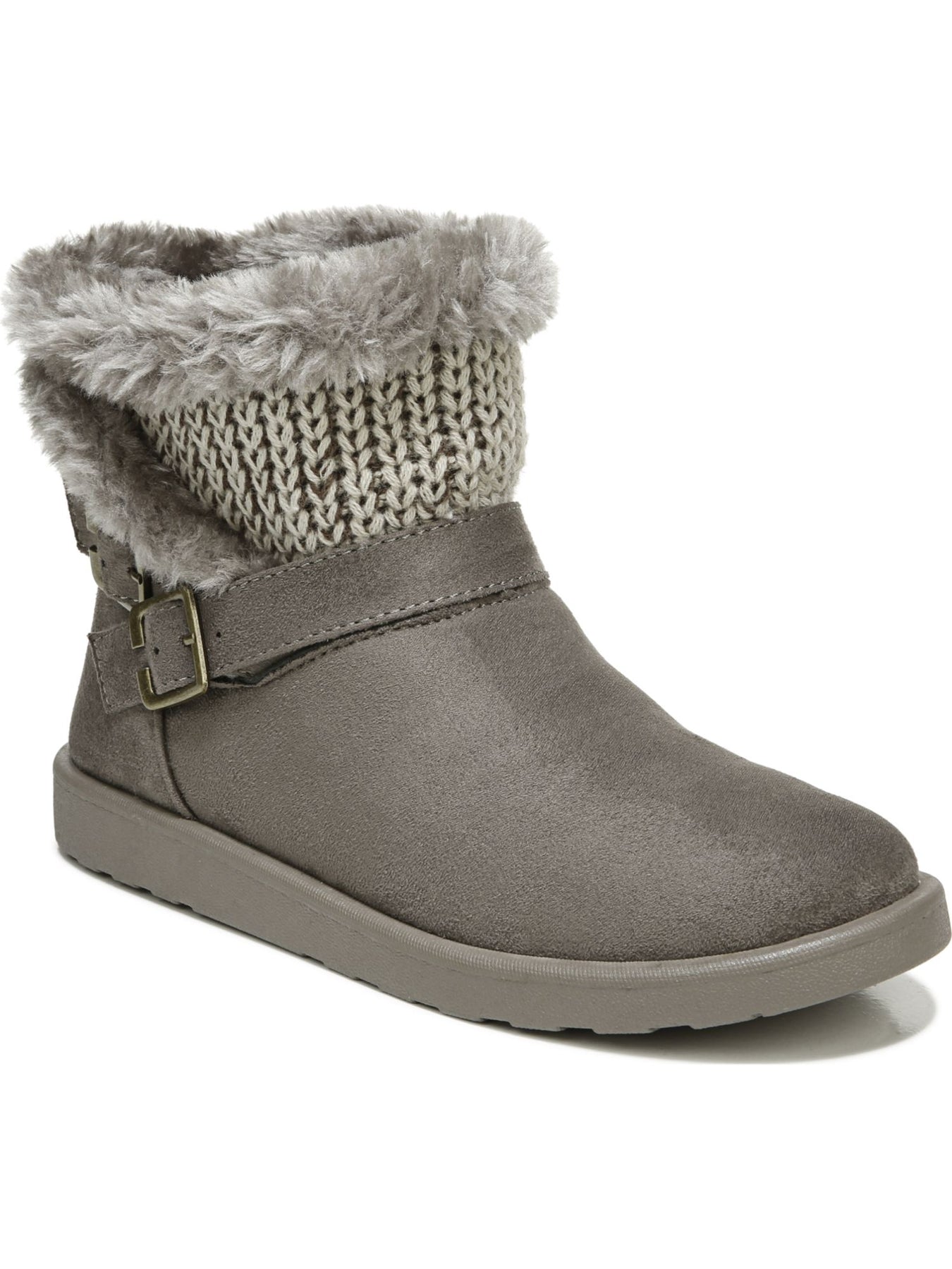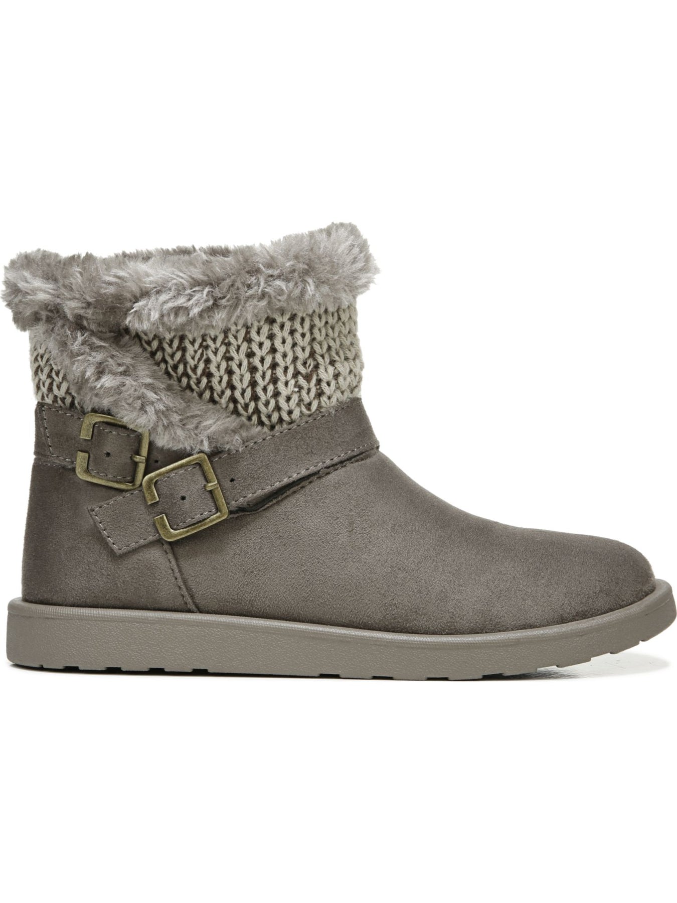 Womens Gray Knit Traction Sole Buckle Accent Comfort Flurry Round Toe Wedge Slip On Booties M
