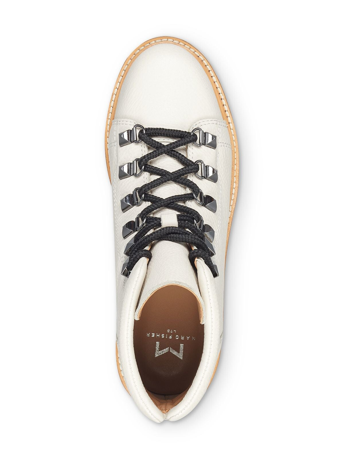 Womens Ivory Pebbled Padded Studded Lug Sole Ltd Issy Round Toe Block Heel Lace-Up Leather Hiking Boots M