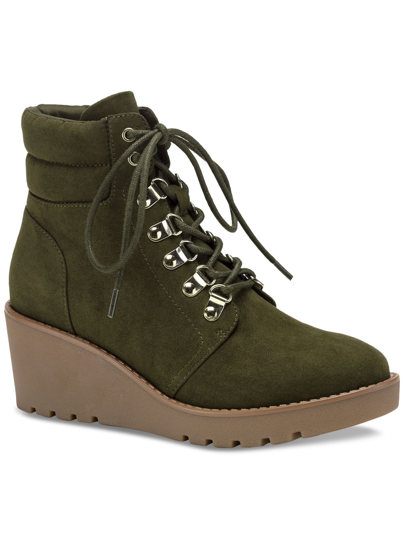 STYLE & COMPANY Womens Green Lace Up Cushioned Carmenn Round Toe Wedge Zip-Up Booties 8 M