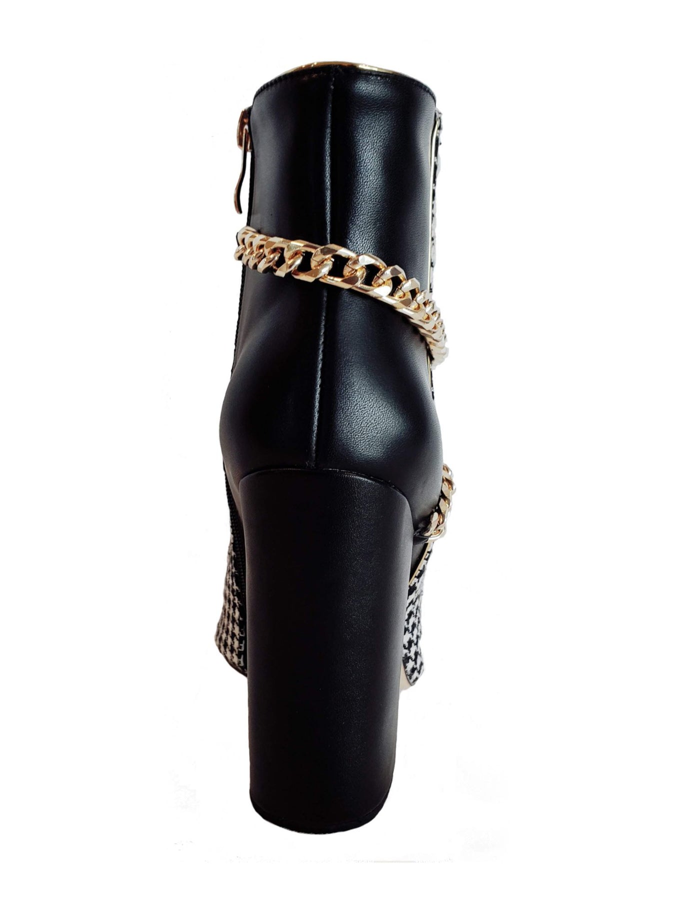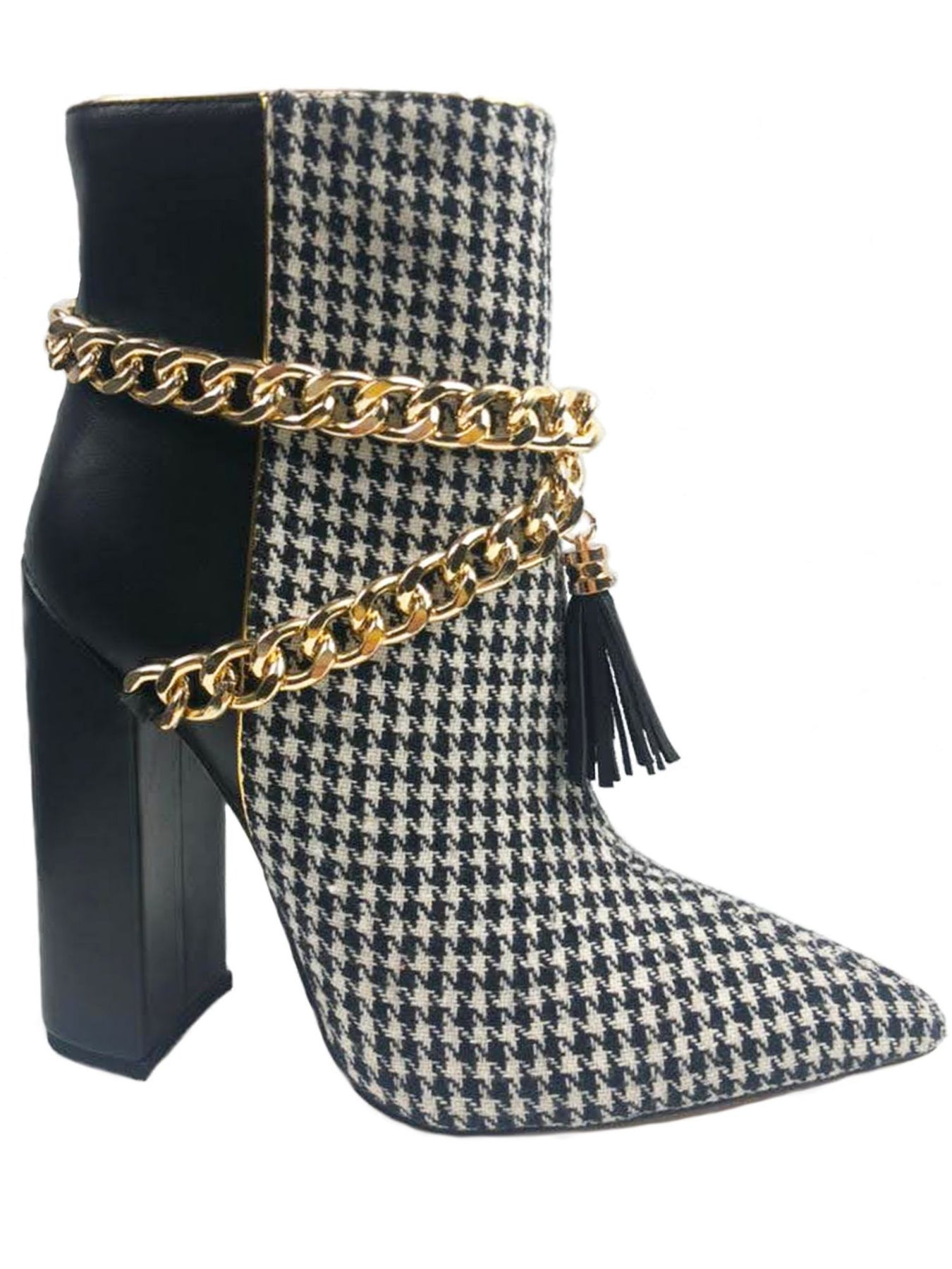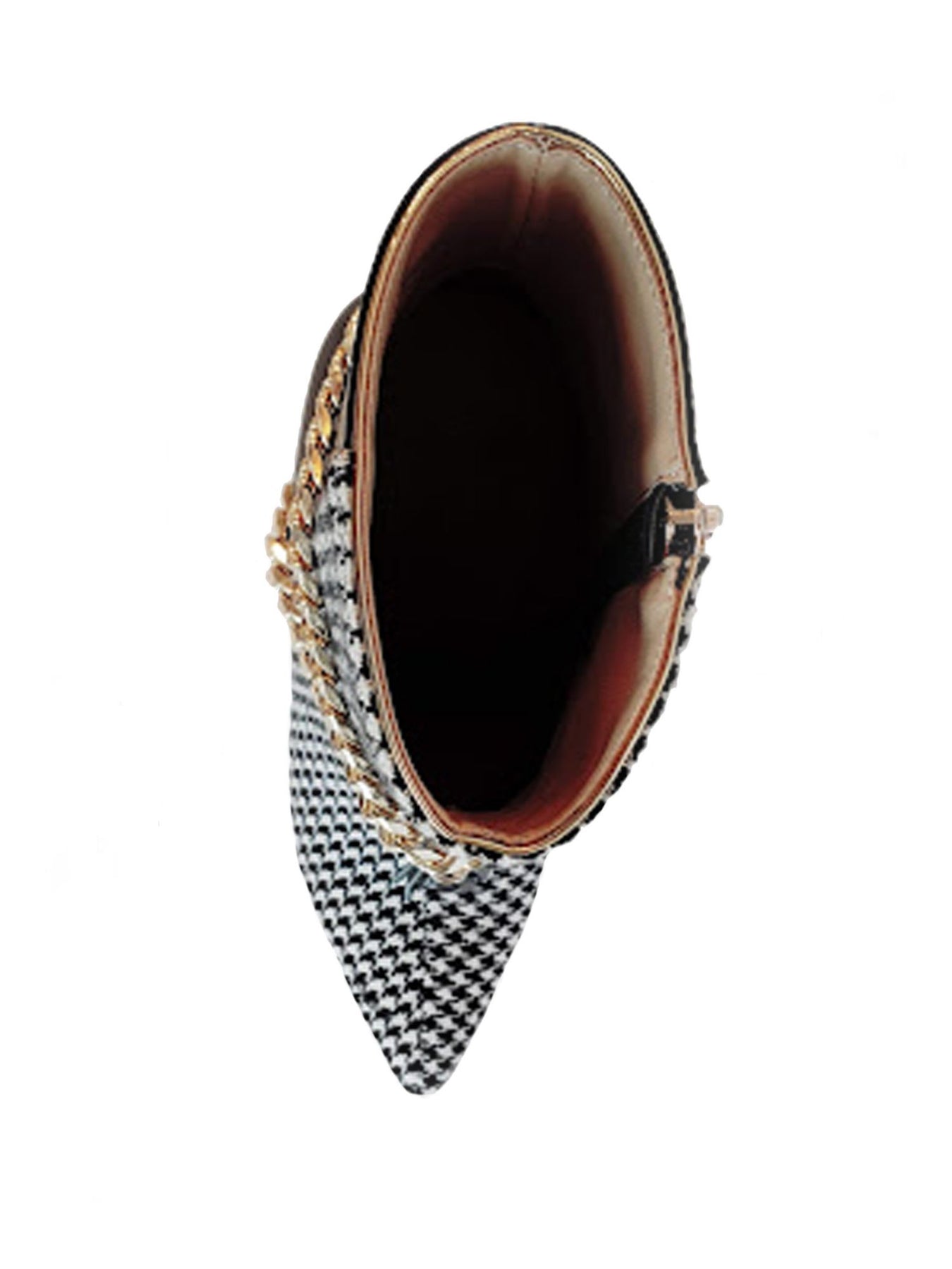 Womens White Mixed Media Chain Detail Tassle Padded Keiisha Pointed Toe Block Heel Zip-Up Leather Dress Heeled Boots M