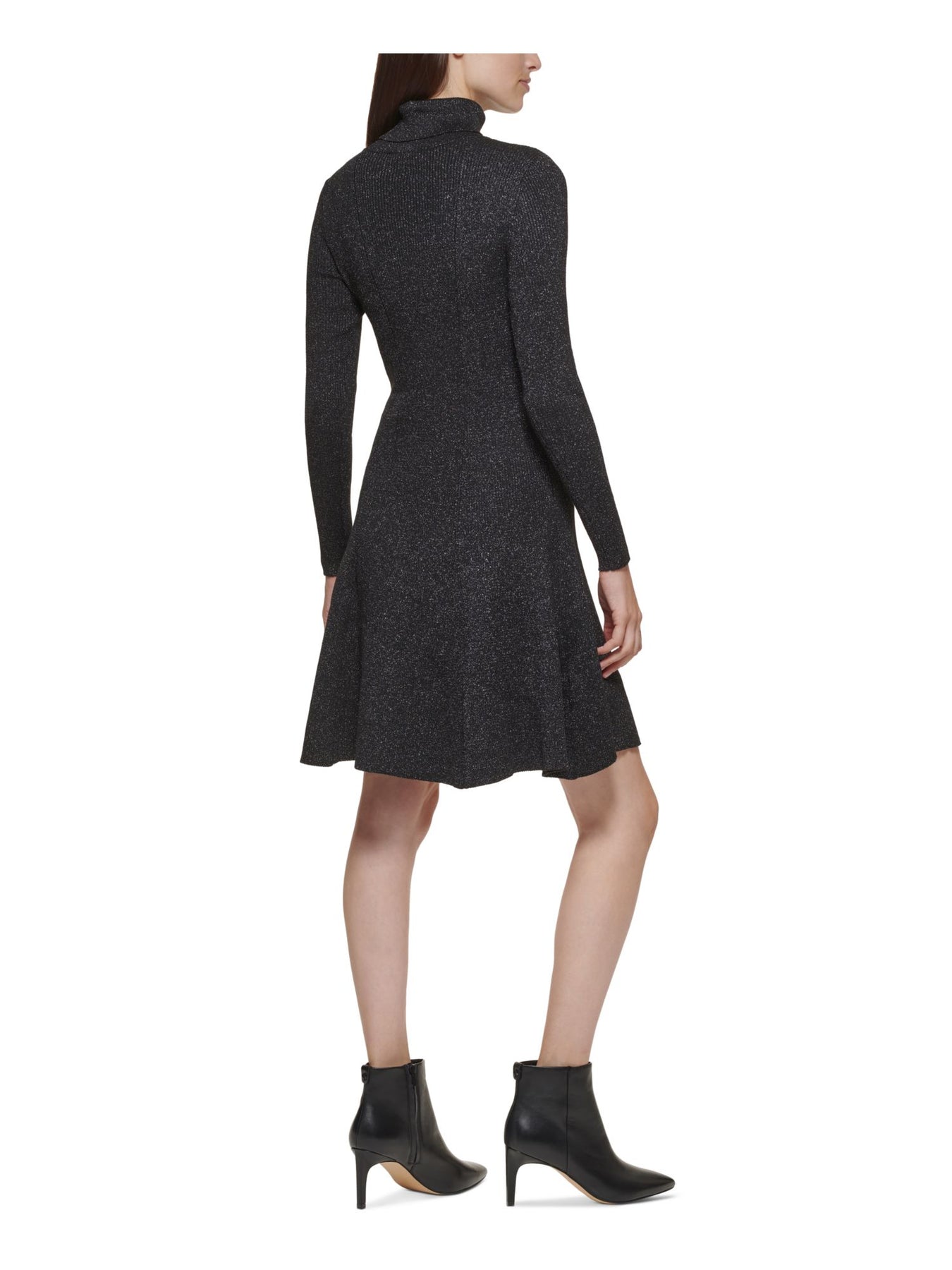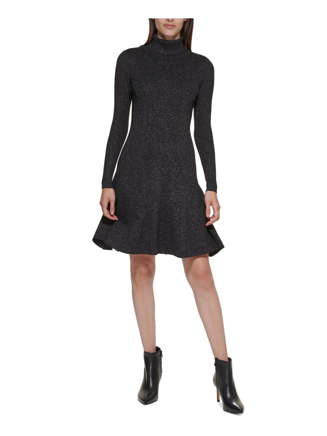 CALVIN KLEIN Womens Knit Long Sleeve Turtle Neck Above The Knee Party Fit + Flare Dress