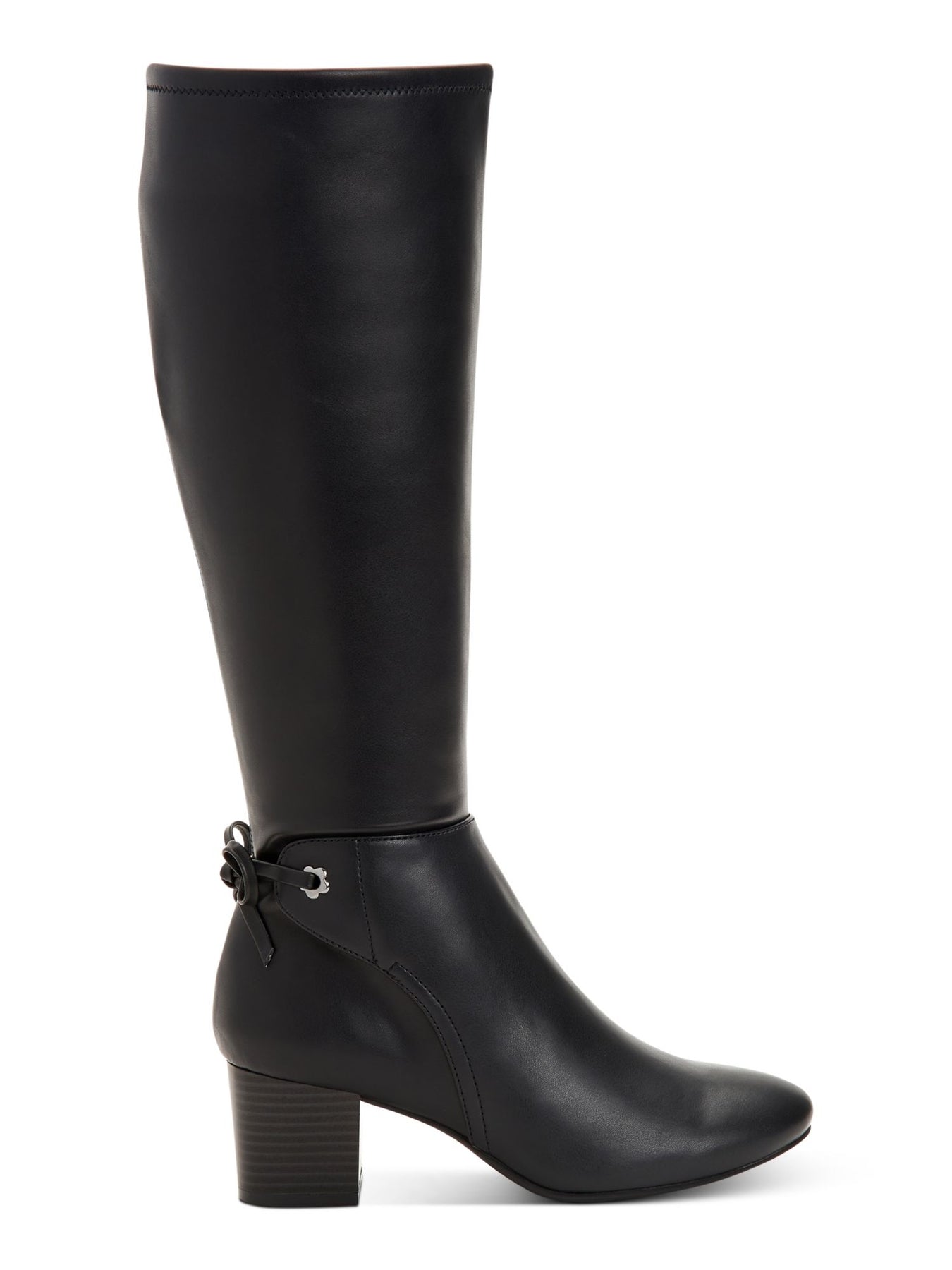 Womens Black Flower Eyelets Bow Accent Cushioned Jaccque Almond Toe Block Heel Zip-Up Heeled Boots M