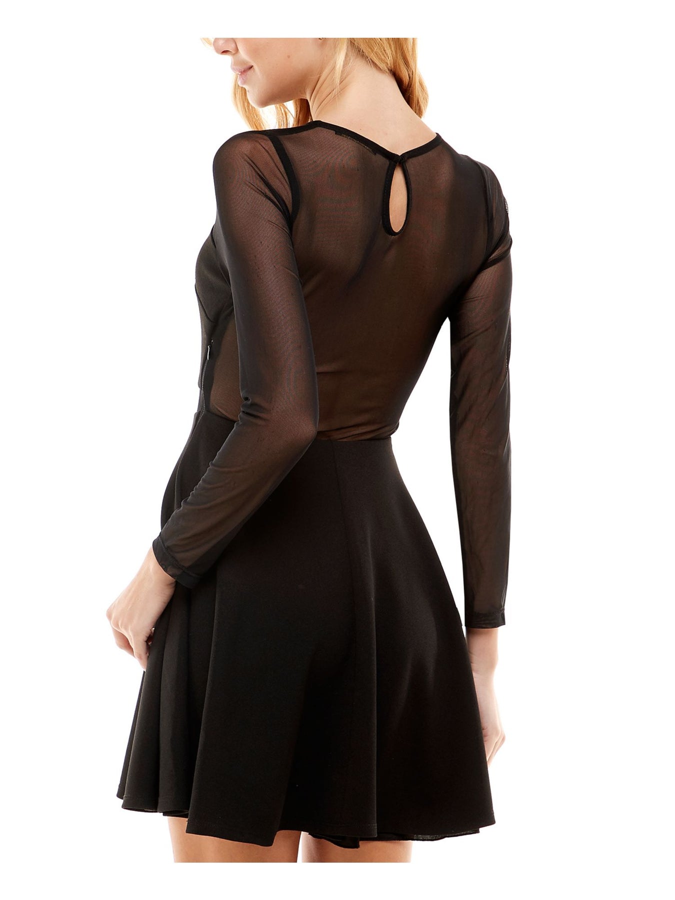 Womens Zippered Long Sleeve Asymmetrical Neckline Mini Party Fit + Flare Dress