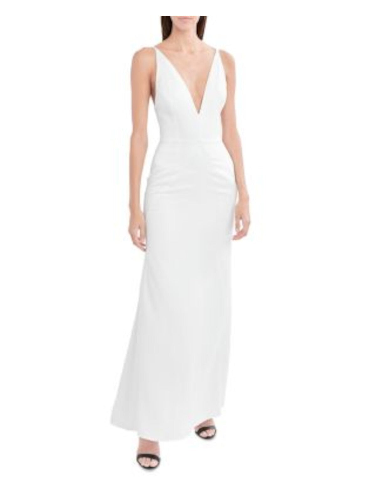 AQUA Womens Gown Full-Length Dress White Zippered Slitted Spaghetti Strap V Neck Formal Solid Lined Juniors 2