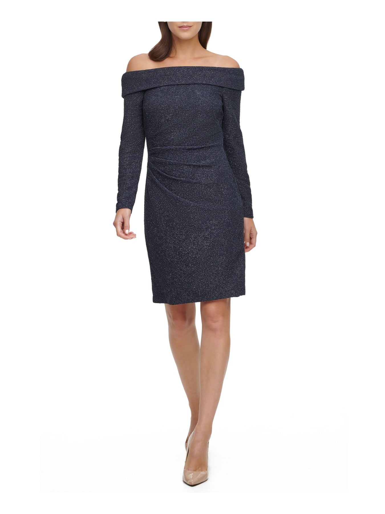 ELIZA J Womens Glitter Textured Off Shoulder Above The Knee Party Sheath Dress