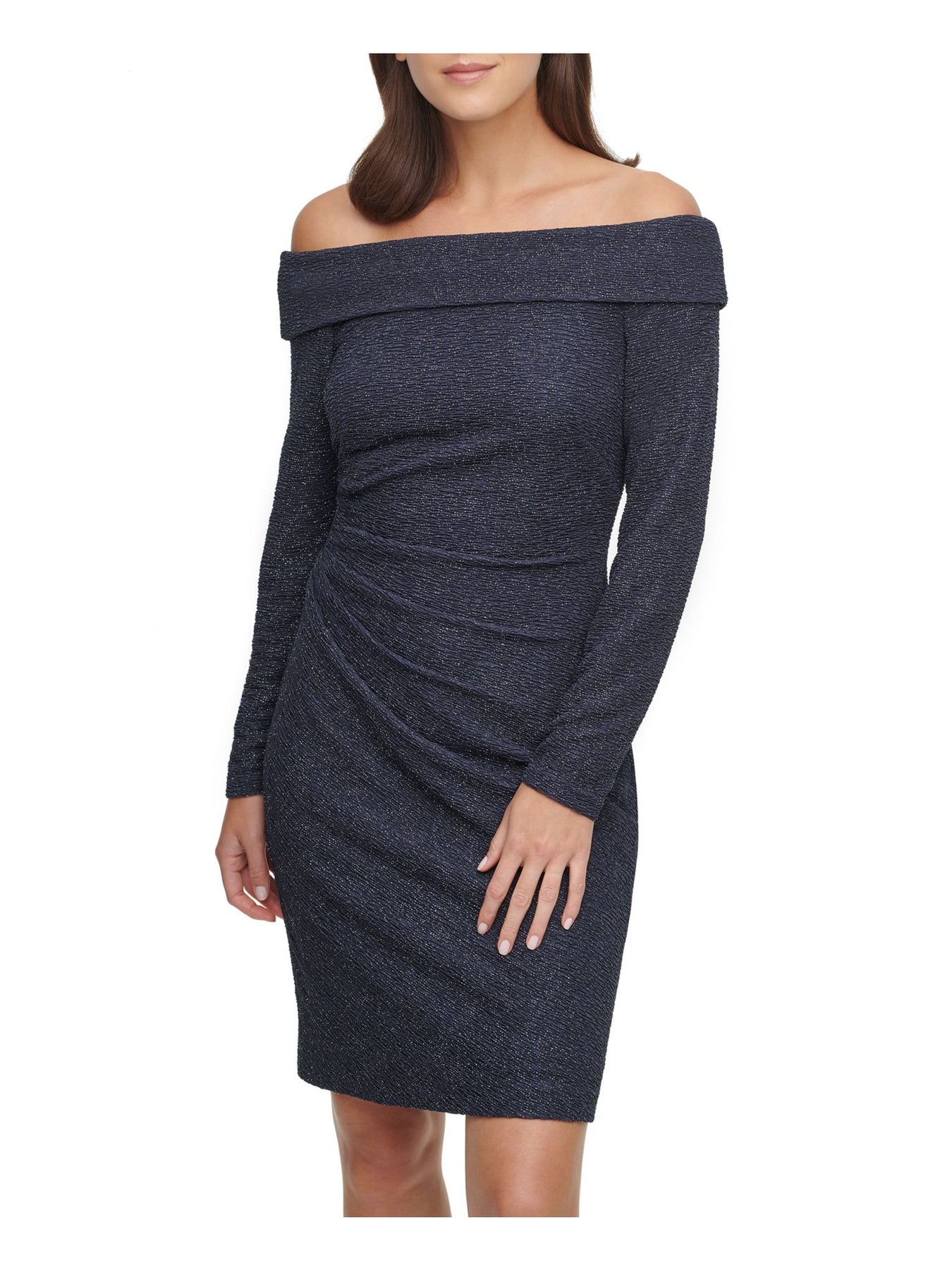 Womens Glitter Off Shoulder Above The Knee Party Sheath Dress
