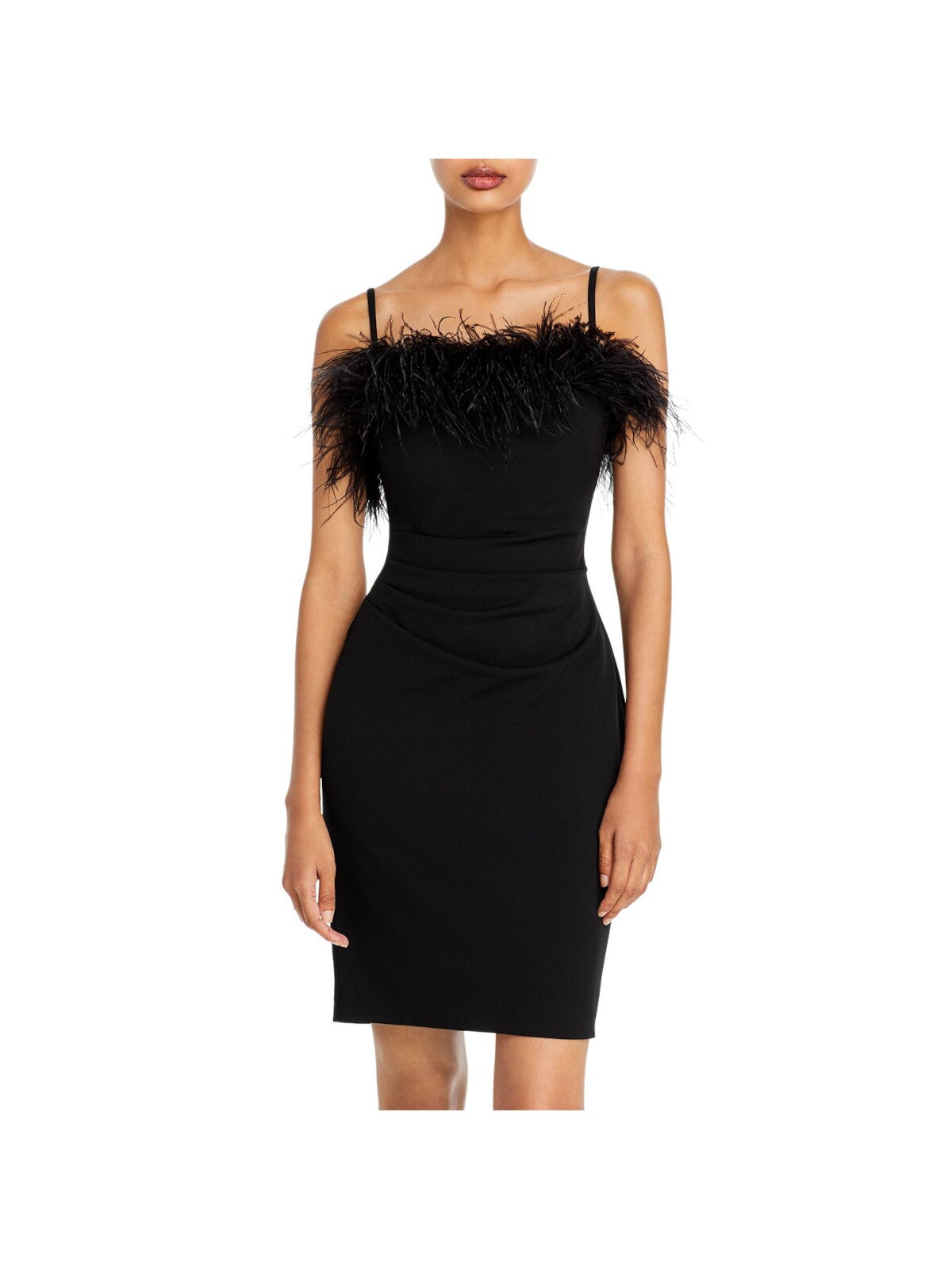 AQUA Womens Body Con Above The Knee Dress Black Spaghetti Strap Cocktail 0