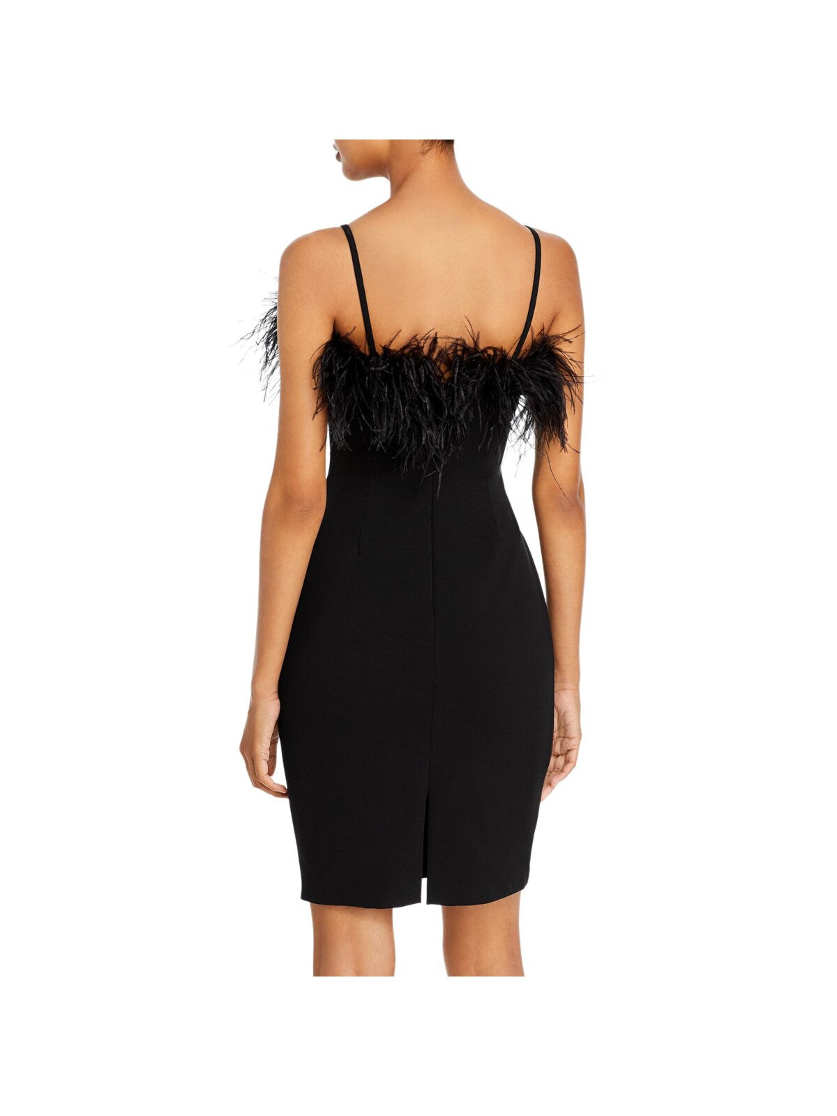 AQUA Womens Body Con Above The Knee Dress Black Spaghetti Strap Cocktail 2