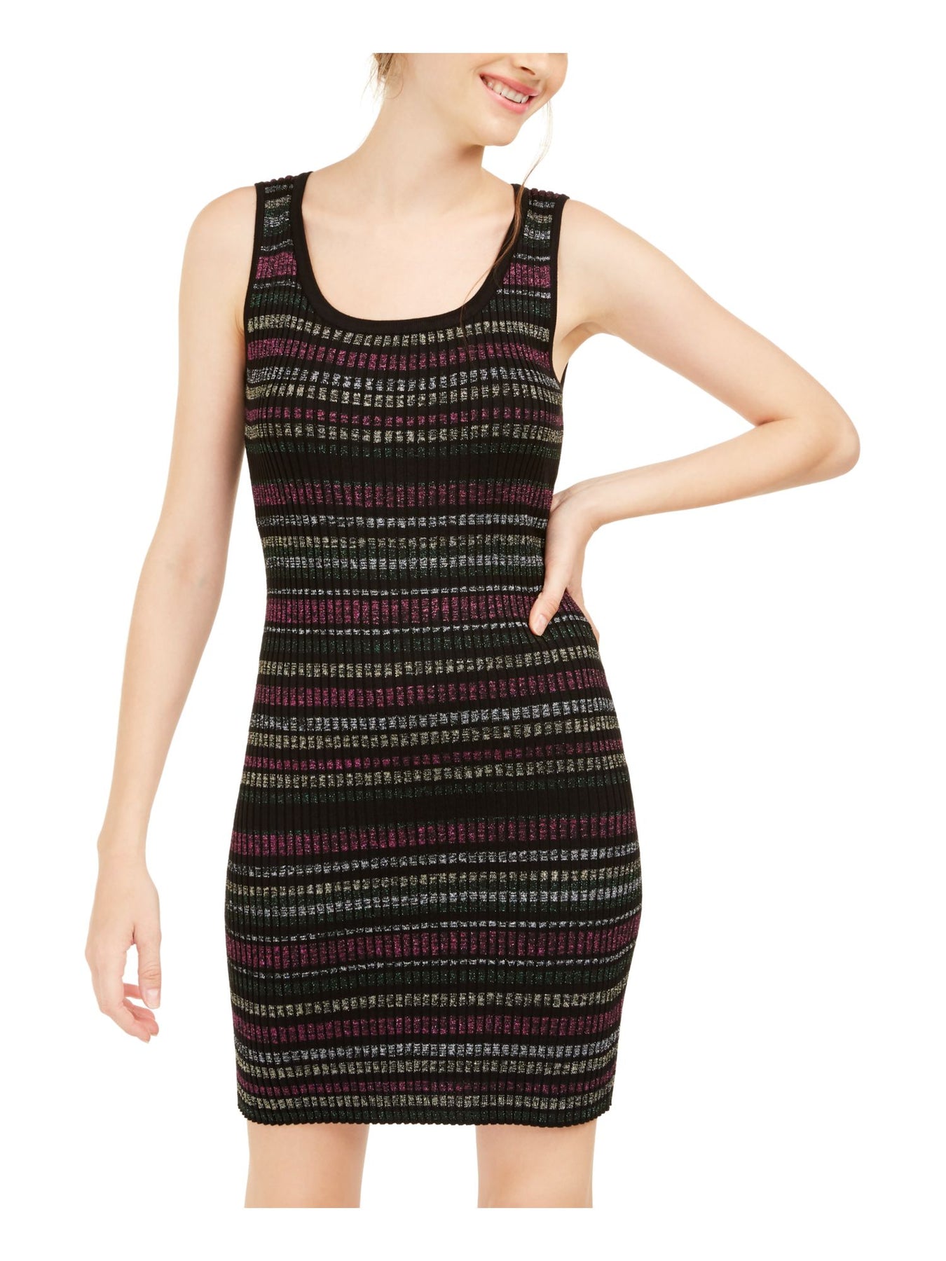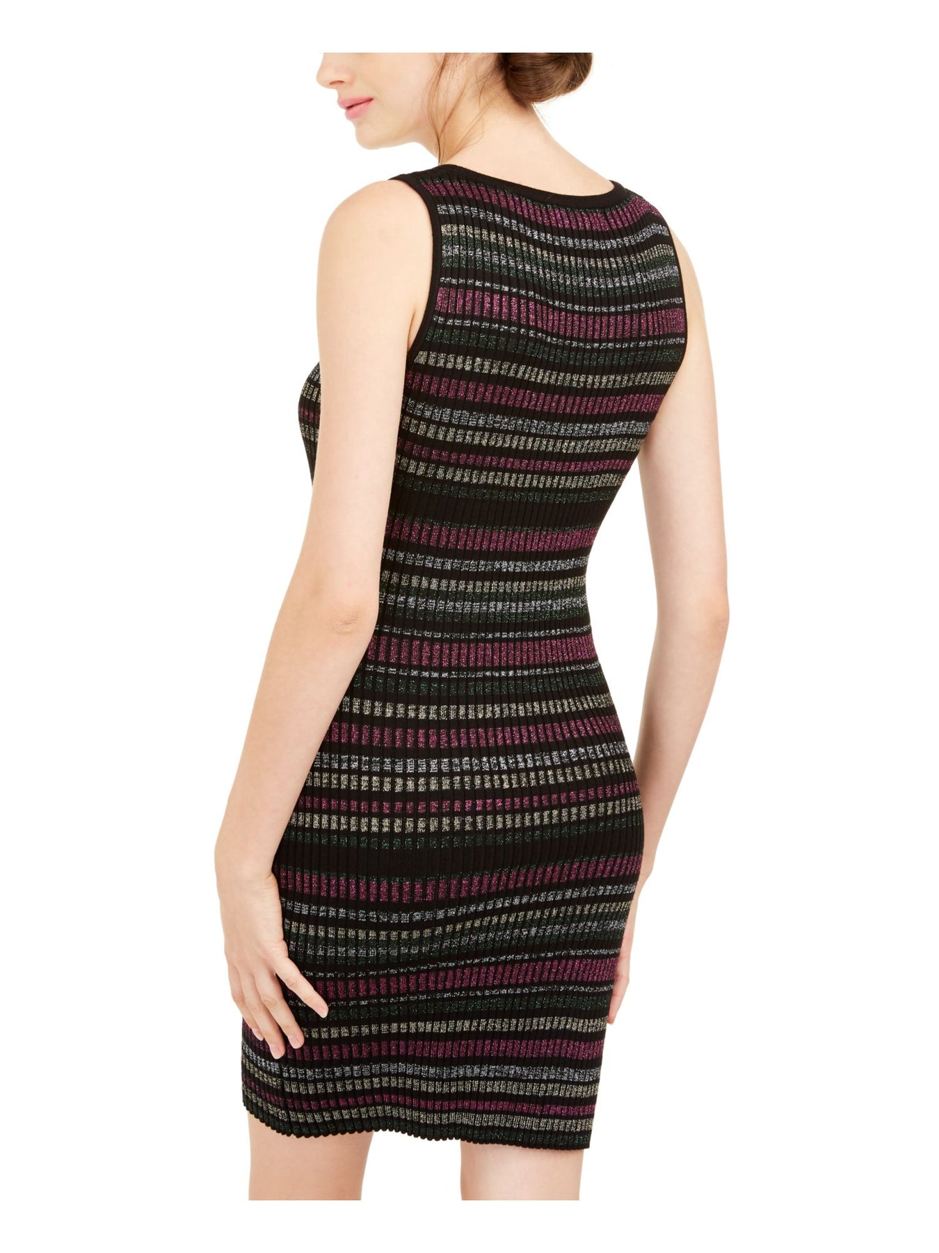 PLANET GOLD Womens Black Glitter Striped Sleeveless Scoop Neck Short Cocktail Sheath Dress XS