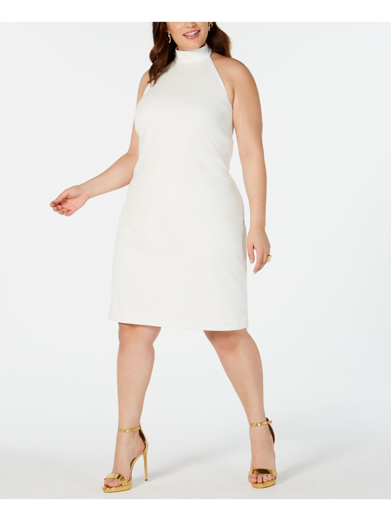 TEEZE ME Womens White Sleeveless Halter Knee Length Cocktail Sheath Dress 24\25